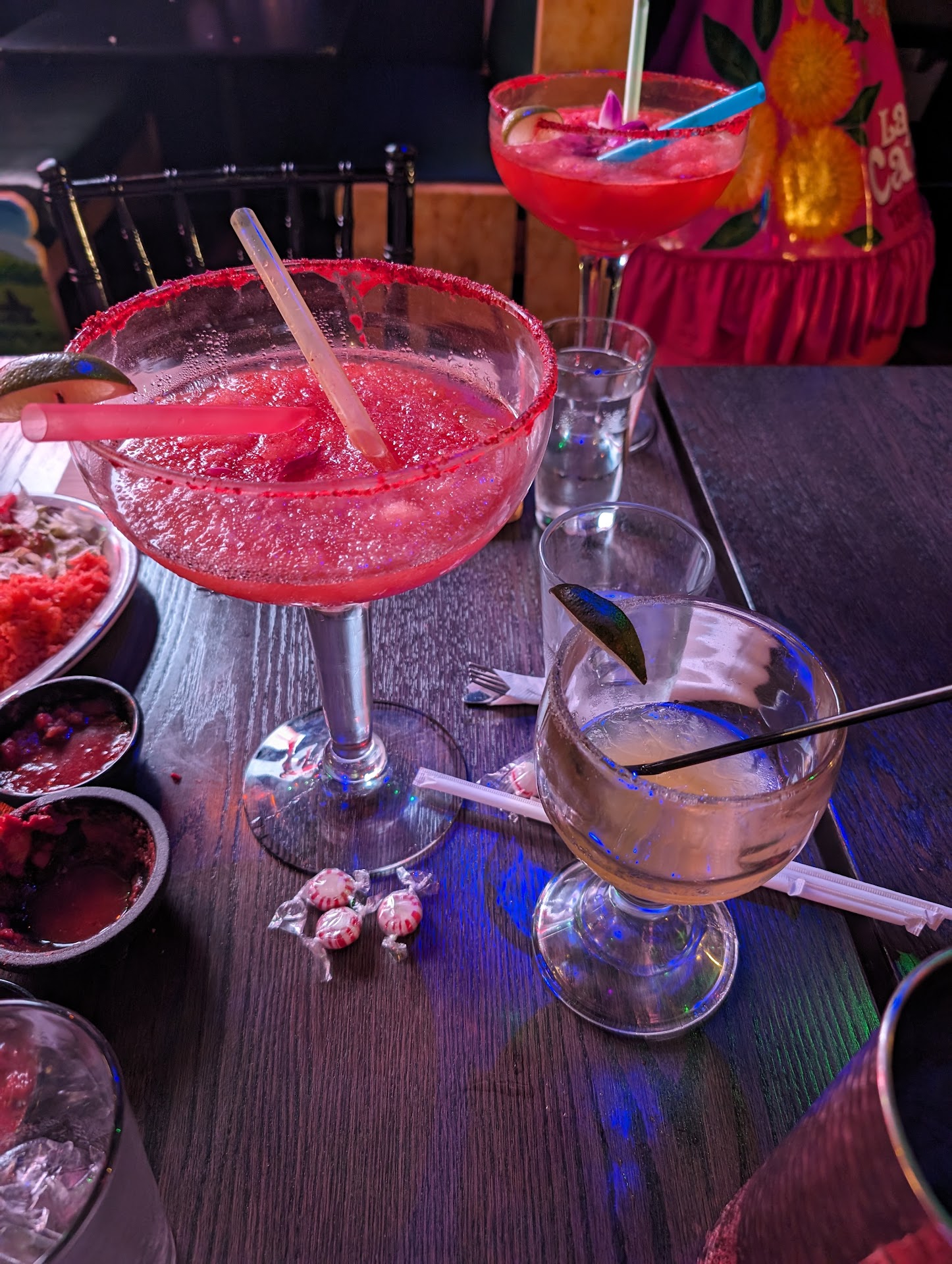 As for the drinks we had a watermelon margarita, piña colada, and ice tea. The watermelon margarita was fantastic and strong. The Pina Colada tasted like a margarita trying to be a pina colada. The ice tea was good our only complaint is my husband was given a small glass and continually had to request refills so he asked the waiter if he could just have a bigger glass. At first he was told they do not have bigger glasses. Then the waiter returned and said he was mistaken and they do have bigger glasses but his boss said he would have to charge my husband for using a bigger glass…. Thought this was strange. What is the difference from refilling a small glass constantly vs providing a bigger glass with less refill needs??