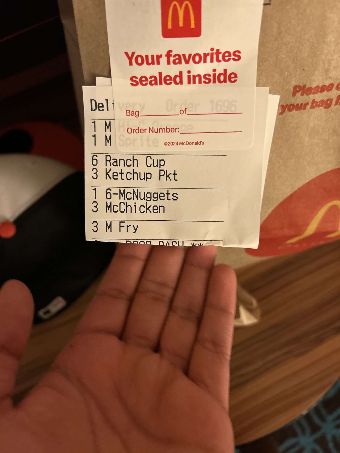 The first thing I order is a 10 piece chicken nugget meal. EVERY TIME I request HOT MUSTARD...I have not even once received the correct sauce since I tried it for the 1st time at one of my earliest visits to this store. Generally I end up receiving honey mustard which I do not much care for but can make due with. Today, after once again requesting hot mustard, I received HONEY ...not honey mustard, literal honey.