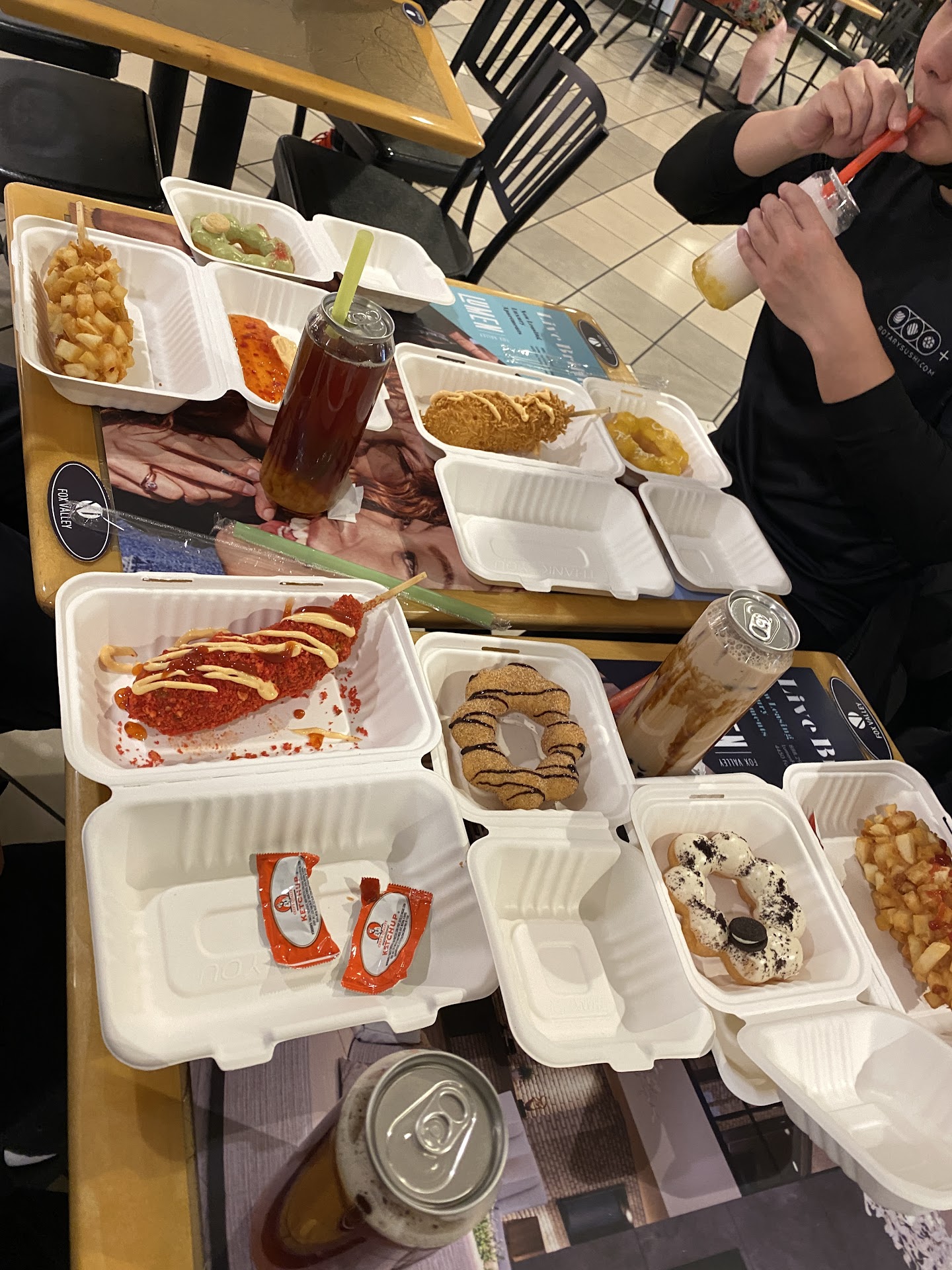There's also 3 kinds of Korean corn dogs to choose from including a hot Cheetos covered one. How interesting!