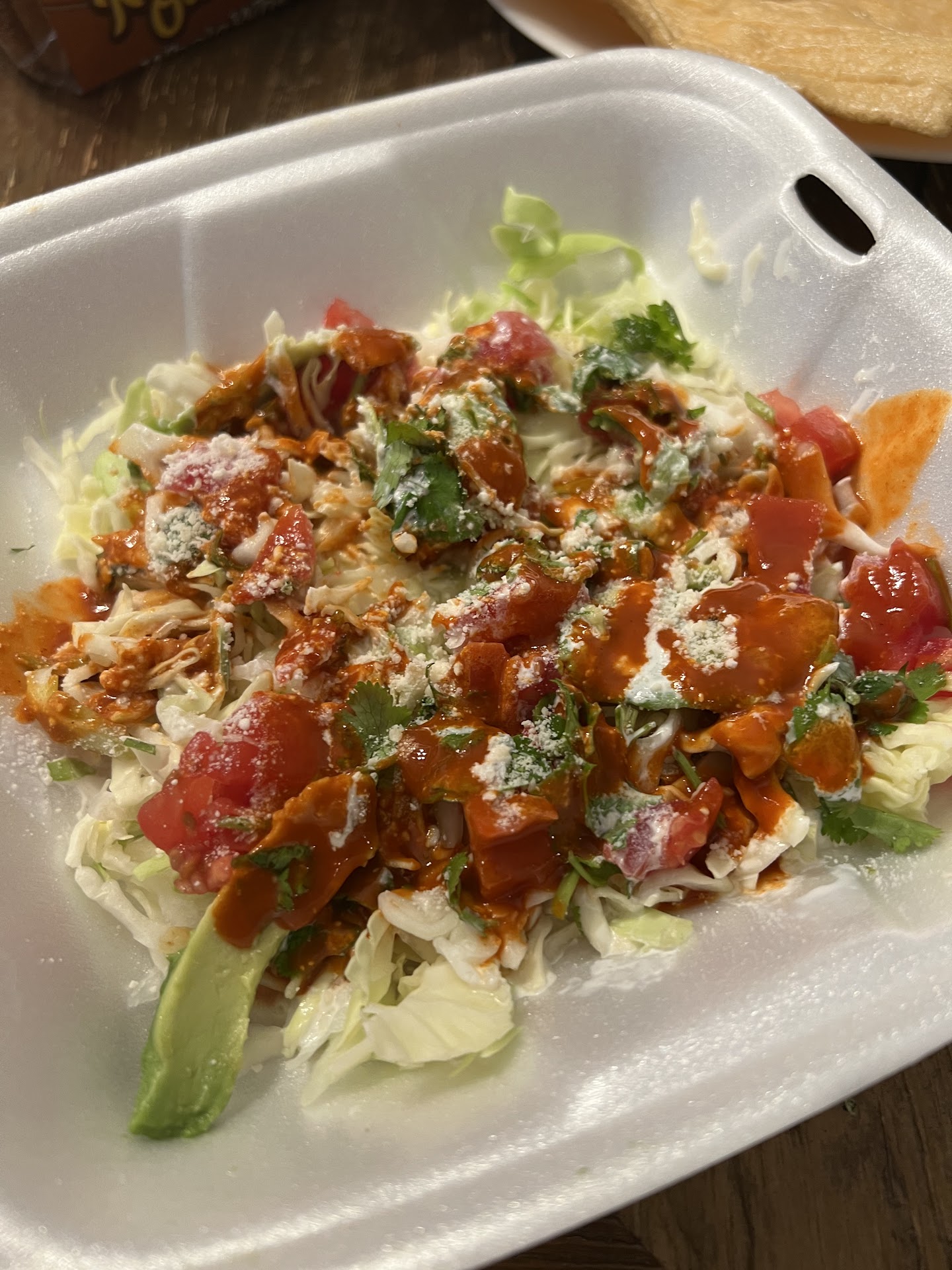 I also enjoy the flat pork rind with cabbage dressing and seasonings on top. Very delicious...