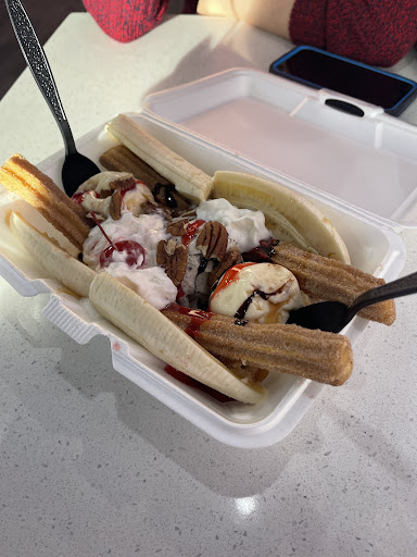 Third time we have been here. Came in this evening (Friday), only people in restaurant. One young girl working behind the counter. Ordered two crepes, four milkshakes and two scoops of ice cream. First crepe she burned, had to make over, no batter for the second crepe so she had to make more. Took an unwashed blender and measuring cup and spoon from the sink, DID NOT WASH OUT NOR RINSE OUT and used that to make more crepe batter! A no no in the health department handbook. First attempt and batter burned, had to remake. First milkshake (Oreo) was mostly ice and we had to ask to remake it. Second milkshake (Oreo)was better. Third milkshake didn't have all of the ingredients in it (smores), no graham crackers, no whip cream, etc. Was very apparent this young lady was flustered (new?)as she was attempting to make everything we ordered. Took her about 35 minutes to make everything. Was bragging about this place to my grandson visiting from out of town and when we left he said, "not impressed". We will not be back. I can understand lack of workers but reusing utensils, etc from sink...
