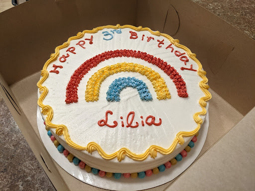 I have gone here for the past 3 years for cakes for my child's 1st, 2nd, and now 3rd birthday. I should have written a review sooner! We have enjoyed all three cakes every year. The owner is friendly and takes the time to listen to what you want (and even sketch it out on paper) and offers helpful suggestions. I was surprised when I went in this year she remembered me from previous years and even remembered what cake flavor we did last year! We have tried different flavors and they all turn out delicious! We tried a chocolate cake with blueberry filling this year and it was so good! The cake is never too heavy or dense or dry and is always enjoyed by all of our guests. Even the chocolate cake wasn't too much for an 11:00am birthday party. We always go for the whipped frosting and it is light and smooth and the cake designs look great on it. You can tell there is love and care put into these cakes and I'm happy to support a...