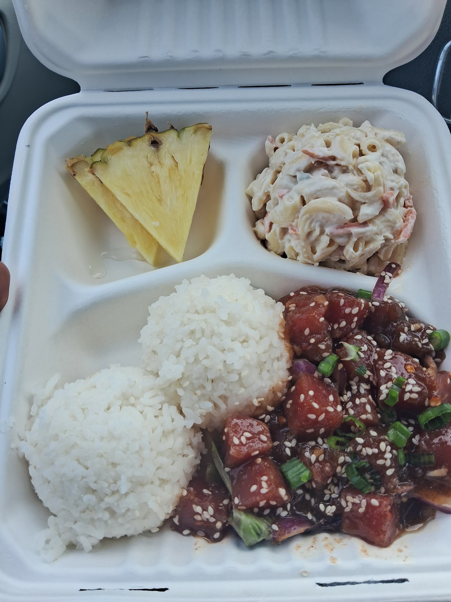 Read moreThe food is fine, it's just a little pricier than it seems. I ordered the tuna poke and since the only price listed on the menu for it is $10 I assumed when I was asked if I wanted a plate it meant I was getting whatever was on the menu for $10. However, I was shocked to find out I was charged $16 for the plate and went to ask after I saw the charge and the person at the counter said that by plate he meant the lunch plate not the small plate. It was only my second time here, so I didn't know the difference, and it was not listed on the menu. I feel like I should've been informed of that ahead of time and was a bit disappointed since the poke was too salty. The first time I had come, I got the combo plate with steak and chicken. The steak was too salty as well, but the chicken was tender and well flavored. The hurricane fries are good too, also just a tad bit too salty. I also wish they would have more than two small slices of pineapple on...