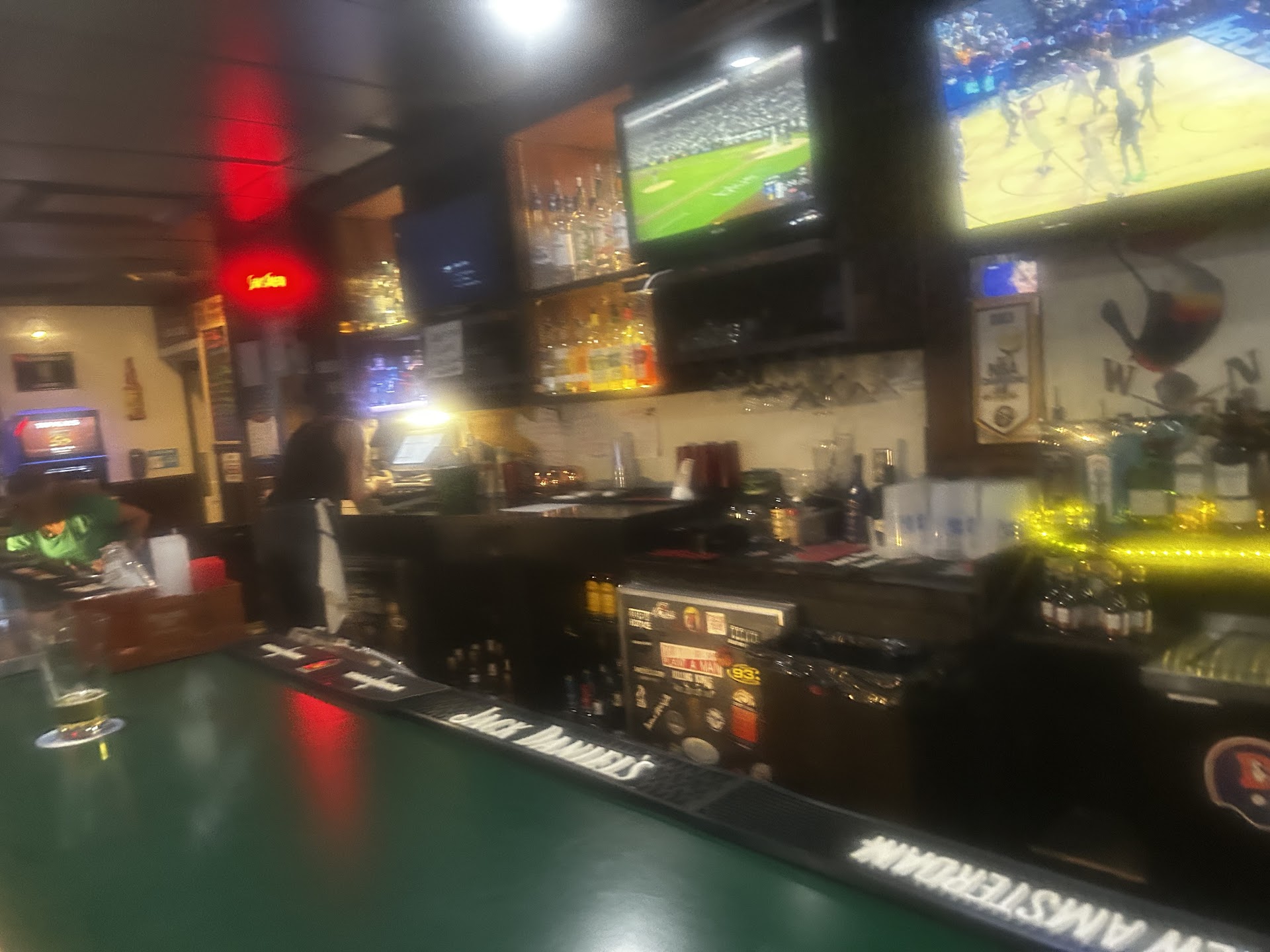 First thing noticed was the strong smell of urine in a very dark atmosphere. 2nd- A very nasty carpet 3rd- the menu stuck to a nasty table. 4th- restroom toilet was broken (wouldn't flush). Before I was out of there, the bartender was there to fix it.. great, except it didn't dawn on me at the time (too busy chatting) that she hadn't washed her hands before going back to the bar, holding a glass up to the dim light and pouring my wine. I had 2+ glasses of wine. Next day, I woke up SOOO SICK 😫 Felt like the inside of my mouth and throat had been chemically burned, and looked like it. 3 days of nothing but milk. I'm not saying it is from Sean's.. just a very strange coincidence to get that type of ill after 2...