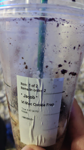 Read more2nd Update:I always ask for a small cup of caramel crunch BECAUSE 9x outta 10 I don't get anything other than a stingy sprinkle on top. That was the case today. Didn't recognize anyone working there & including a picture of the "extra" sprinkle 🙄. I've even said upcharge me... They could fix this issue if they either offered to sell containers of their different toppings or had any upcharge availability. You KNOW they pay next to nothing for them, So it would just be one more way they can make more money... I'm going to leave it at five Stars anyway. I also put a picture of of the awesome caramel crunchwraps that Amira makes Update: change to five Stars because Amira, is seriously the best drink maker ever! I had ordered with her only once and she remembered the specificity of my drink on the second time I went there! I always get the same exact thing and I'm always happy to see her face & to know that she's making my drink! Honestly she's kind of ruined other Starbucks locations for me 🤣 Original review: Didn't order anything for myself but my fiance's drink was good. There's a key code pad on the bathroom doors so only...