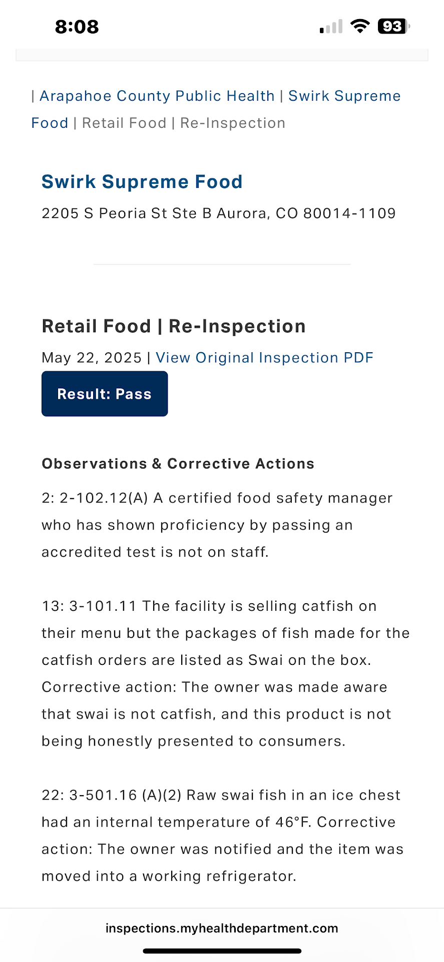 All I will say is always ask for a receipts, check your charges and if you go into Swirk Soul Food, please look to the right of the kitchen door and see the prices that are not reflected on the menu in case they fail...