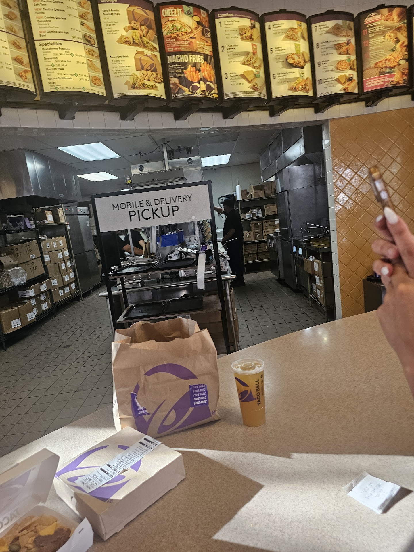 Read moreI understand Friday nights at Taco Bell drive thru are typically busy since I doordash but yesterday....I waited 30mins trapped in line waiting for a delivery I had accepted, only to get to the window and have them tell me they had not even begun it. I look through the window..... No less than 5 other orders bagged and waiting to be picked up/delivered. Staff did quickly apologize and kick it into high gear so at least that was good. Something is going on with ALL Taco Bell locations. Their drive thrus seem like a longer wait these days, their orders often lack attention to detail/correct items, and generally the staff seems not to grasp the concept of FAST FOOD. On top of all this....most of the Taco Bells in my market area seem to pick and choose when they are open....when they lock the lobby....when they bring food to you as they advertise! It's getting absurd. I know I'm not the only one. I talk to patrons and other delivery drivers about Taco Bell experiences a few times a week. I've rarely heard anything but disappointing news the last year! Corporate is all about profits.....cutting corners....hiring young and inexperienced staff....and not paying them what they are worth! This is likely why a "now hiring" sign is up in nearly all locations. Their obligation isn't to customers anymore.....It's to the shareholders! WHAT A FRIGGIN SHAME that it's become so obvious! DO...