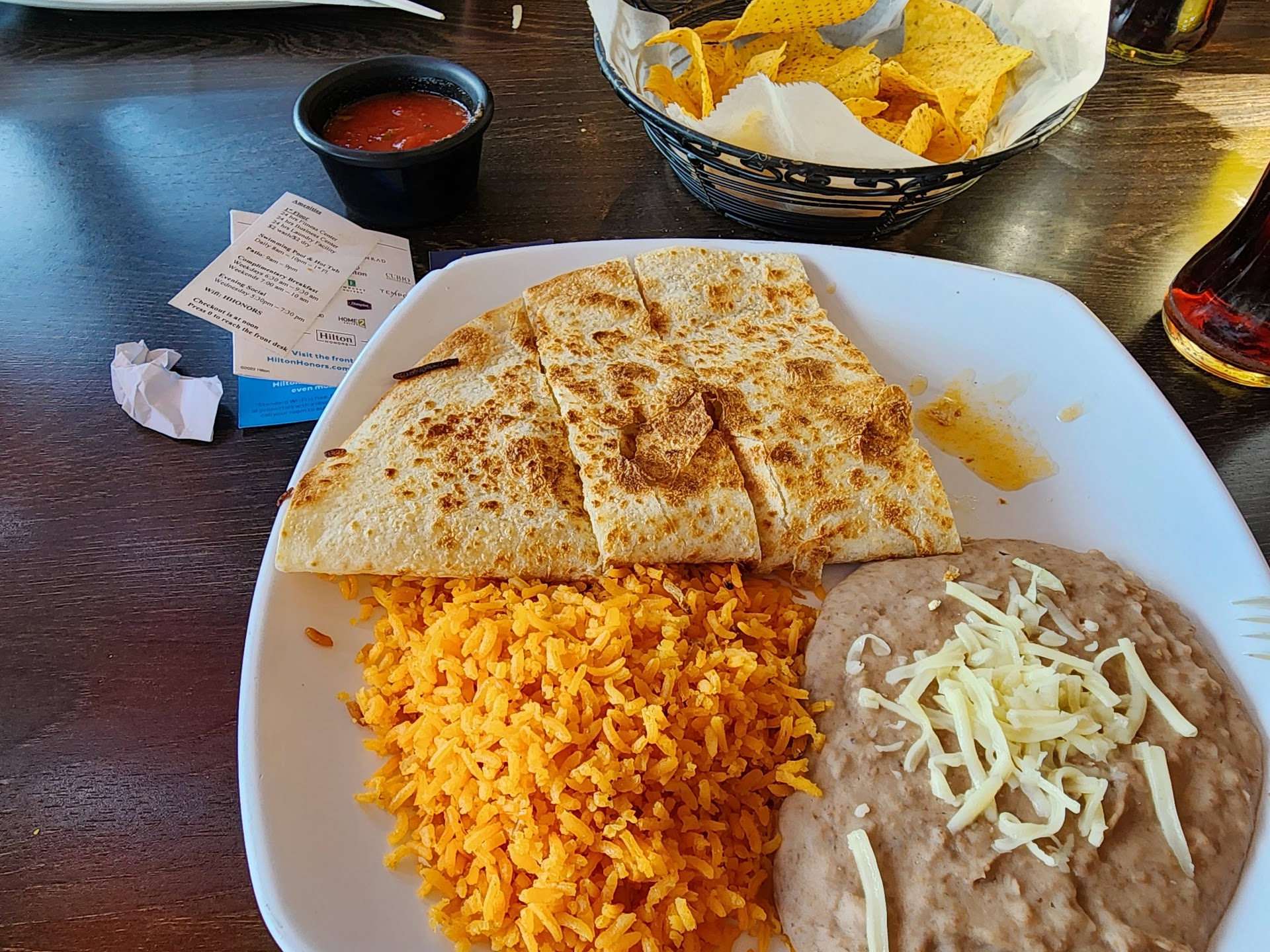 Read moreWe were out shopping and didn't want to stop and ruin the shop till you drop vibe but we were starving and a drive thru wouldn't cut it but both agreed a quick taco or quesadilla would hit the spot. We decided on Taco Dale since we'd never had it before, it was a Friday night and again wanted something quick. Our initial thought or plan was (as it usually is) was to just get it to go and eat in the car and keep shopping.... we went in and ordered a cheese quesadilla and a steak quesadilla I asked if they could cut them in half (so we could split them) to let us each try both. They come with pico, guac, and crema. We didn't get the pico - just guac and crema. The girl was easily accommodating. As we were waiting for the order we quickly realized it may be greasy and we should probably stay and just eat it there. Once we got the order we told them we were going to stay and Christian was extremely accommodating and kind - he brought us chips, salsa, hot and mild sauce and drinks since we weren't going to initially stay. He also kept checking on us to see if we needed anything as well.s Christian was also very kind and friendly to the other patrons that came in as well. The menu is abundantly full, there is something for everyone and the menu can be easily accommodating if needed. The ladies were very kind as well (I didn't get any names though I'm sorry). The restaurant itself was clean, warm and inviting. It is also ADA accessible. We will definitely be...