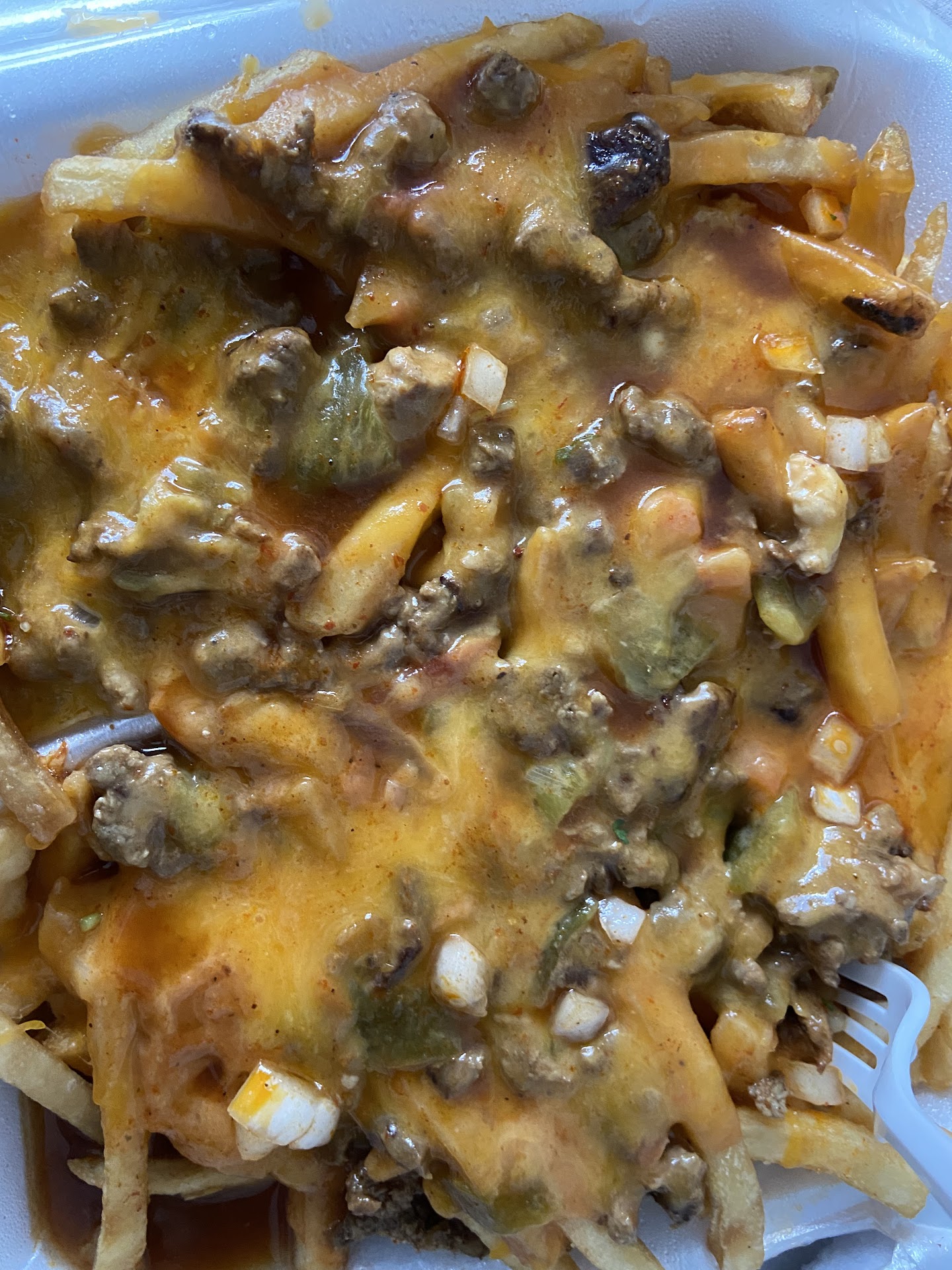 My tacos was delicious but a little tough (the shell) and my soup that your suppose to dip your tacos in was bland But it was still delicious with everything My fries were a little salty but I think that is due to the cheese they use on top of them and even though we ordered steak in our fries I’m PRETTY CONFIDENT they put hamburger meat in them (like mixed the 2 meats) so I feel a little scammed lol but it was pretty good I think I’ll maybe come back a litty...