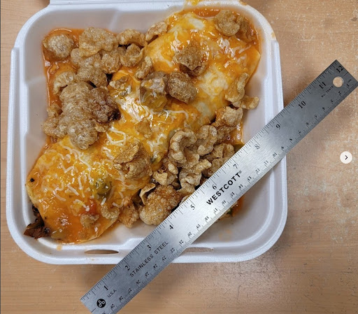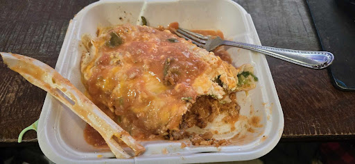 a year ago Delivery | Dinner | $10–20 I ordered through Grubhub but so i cant judge on service or atmosphere, but if the quality of the food is any indication of the rest it cant be more than a 3. my food was disgusting. the burrito had a huge chunk of foam in it from another container. i didn't find until i had already eaten part of it. their big burrito had peas in it for some reason, yes, green peas. why?!?! it didn't even have a bunch either, it was like 3 peas randomly.