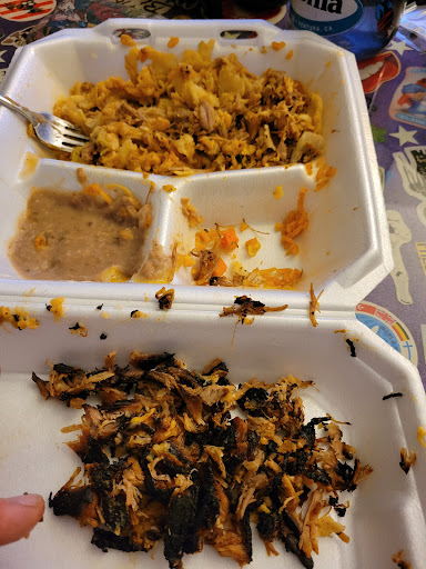 Read moreMy wife and I live within walking distance, so we decided to get takeout from this establishment. Our order was ready on time, and it was correct, including the special instructions. Where our experience took a nose dive was when we tried to eat the food. Firstly, the quesodilla appetizer we ordered actually had TOO MUCH cheese! And I love extra cheese! The wedges were stacked and stuck together. My wife had a simple bean and cheese burrito that she had to eat with a knife and fork because it wasn't rolled very well and was spilling out when she opened it. I had the carnitas enchiladas. Normally, a little crispiness on the pork is great, but this pork was charred black, seriously òvercooked and the "chef" decided to use it anyway(see pic) I doubt they would have used it had we dined in. Also had had sopapillas for desert, which were great except they only gave us a small condiment container that was less than half full of honey, barely enough for 1 piece. Definitely not worth the $48.00 we paid for it all. So many better options for Mexican...