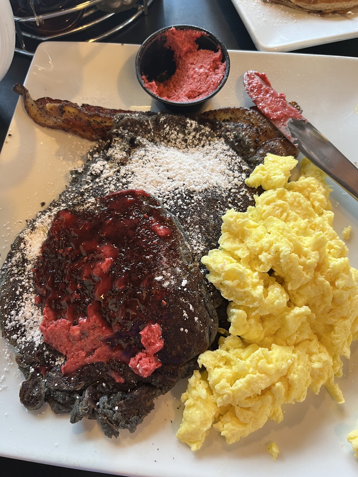 When you walk in, the counter where your order is taken, is up just a bit. I bet you will have to wait in line, but it's worth the wait. I ordered the American breakfast, which is my usual bacon, eggs, potatoes, and toast. I enjoyed my breakfast, as did my husband. My husband had the huevos rancheros, and they were very good. Of course, I had to try his dish, and it was good as well. The coffee, the dark roast, was very good too.
