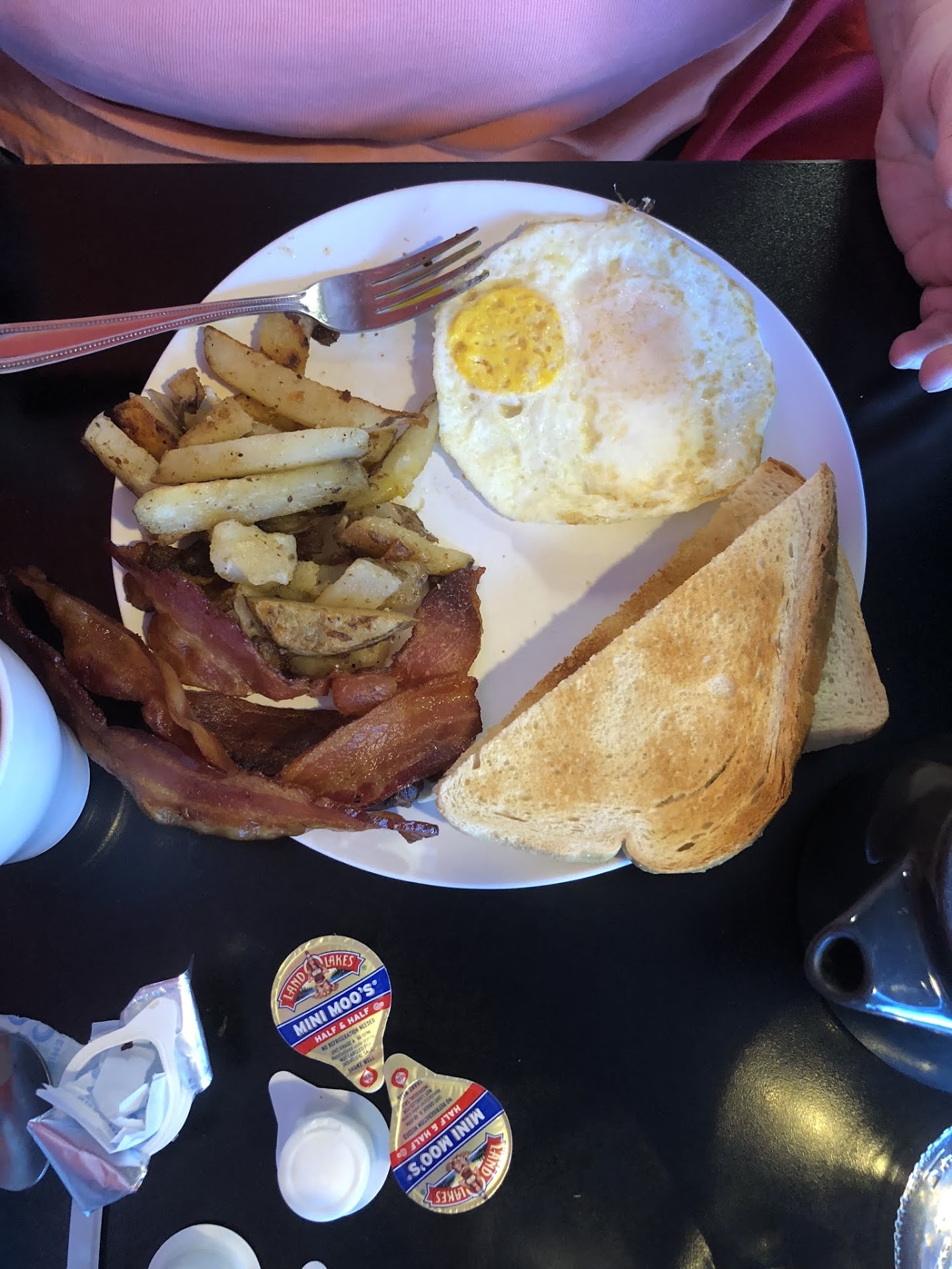 Read moreWent in with high hopes but this place really misses the mark. Ordered a cinnamon bun and coffee first, bun was pretty good, coffee was Luke warm. Chose the “frittata” and the simple breakfast, both of which came out almost immediately when the whole place was packed. Never a good sign. Eggs: undercooked and watery Bacon: undercooked and rubbery Toast: barely warm Potatoes: tasted boiled, cooked just long enough to be served but not to be enjoyed. Pancake: almost right on the money but the center was still uncooked The frittata was just a mess of ingredients poorly spread and also undercooked. The cheese was as cheap as you can find, sprinkled cold on the top. The pepperoni was cheap bag slices and was in a stack in the middle. After a generous addition of salt pepper and hot sauce it was barely passable. When the waitress returned to take the plates, she noticed one meal had barely been touched, asked if we weren’t hungry, or if something was wrong. Told her it really just wasn’t very good and undercooked, but said not to worry about it. She said she’d ask the manager to take it off, which is usually The next step in that circumstance. She returns with a $45 tab and said the manager will not be taking anything off, and had sort of an odd look on her face like she couldn’t believe it either. Recommendation for the restaurant : slow down take your time cook things properly. These meals are clearly not cooked order. I have a feeling there are bins of eggs and bacon sitting there ready to be served up much like you would find in a Hampton inn. Recommendation to the patrons: go...