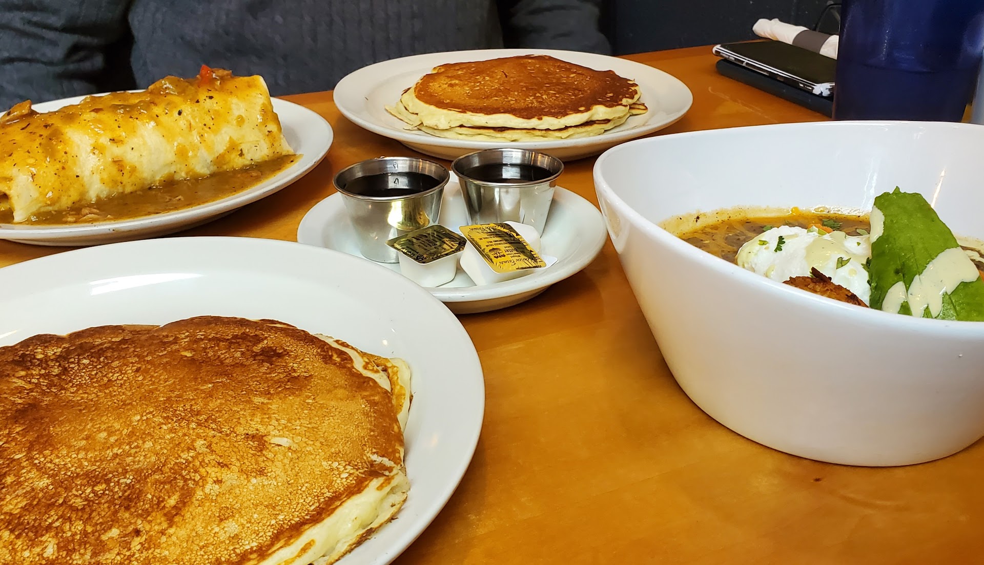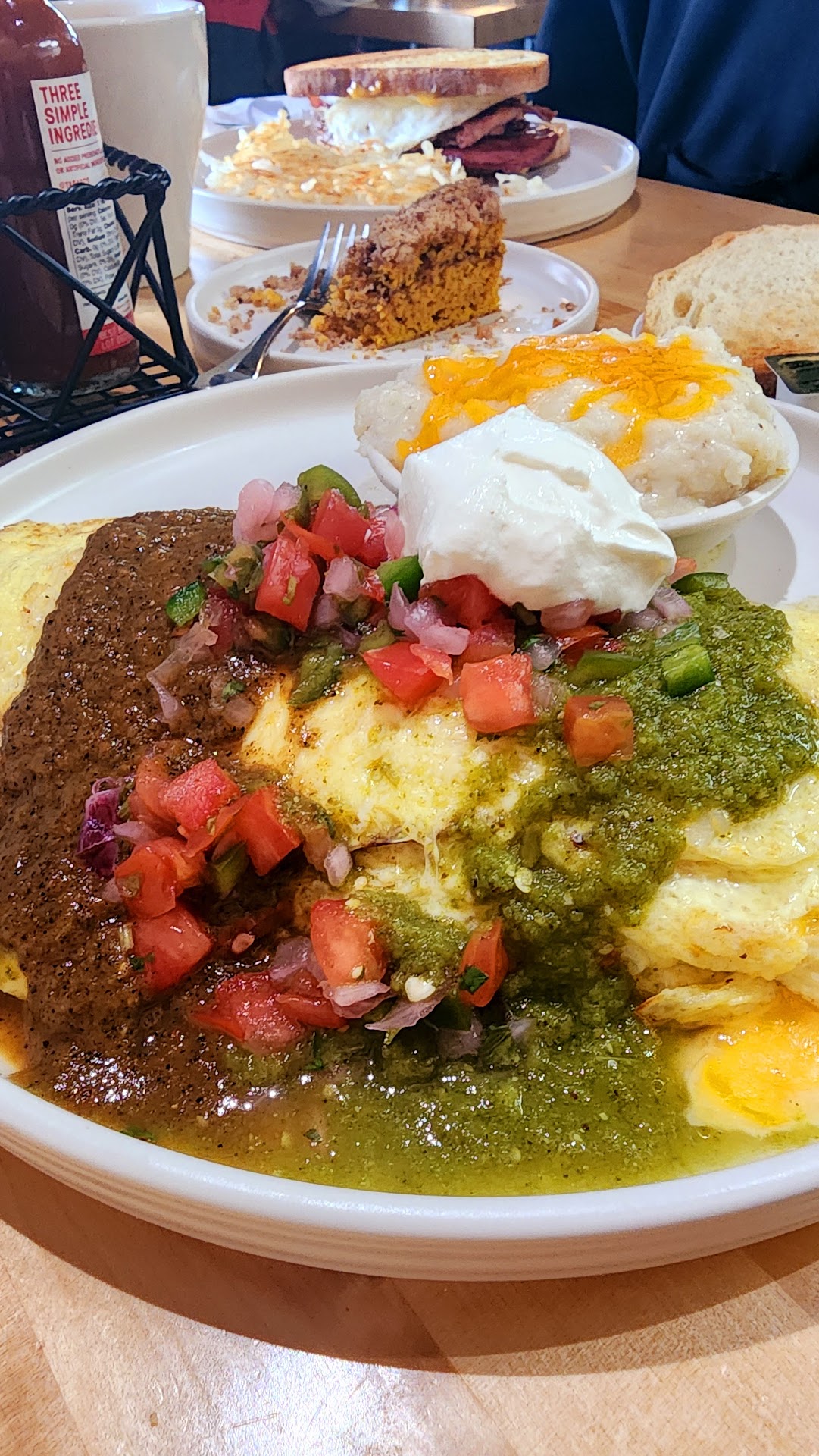 Ā Ā Ā Read moreit's hip happening! This hip breakfast-brunch-lunch space opened in 2023 and is amazing! Nestled next to the Cherry Creek State Park within an office complex, there is ample parking and great menu items! For a Saturday morning, our wait was minimal. The wait staff is extremely friendly. They have seasonal items highlighted... Currently all things pumpkin. We started with the pumpkin latte and pumpkin chai. My partner chose coffee... better than most places, but they did not come to refill it during our time there. I loved the nutmeg in the creamy latte. The chai was tasty, but too watery for my taste. My teenage son loved it! We also ordered the pumpkin coffee cake... layers of cinnamon and sugar, soft and moist... Definitley a must try. For breakfast, each of us chose somethung and were not disappointed! Smothered chirozo buritto for my partner. He loved the green chili flavor. My son ordered a breakfast sandwich with different Itilian meats... and I had the Chili Rellano Omelete! Tangy and cheesy. So delicious. I did not care for the cheesy grits I chose as the side. My portion was flavorless and partially cooked. Adding salt and butter offered some taste. There are many other side options I can choose from next time! We also chose to add pumkin pancakes... again, not disappointed. Overall, this place is a gem! Very ecclectic menu choices, warm and welcoming vibe... friendly wait staff. We will definitely...