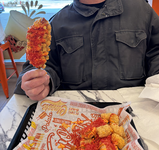 Alright look, I walked in here expecting to find greasy half a55 corn dogs sub par to state fair corn dogs but I was definitely wrong. To start off, when I walked in, the cashier greeted me with a smile and friendly attitude. I regret not taking a photo of the menu but I didn't think I'd be writing this review anyways. I asked the cashier what he recommends and he asked if I had any allergies and what kind of flavors I like and he said the "Two Hands" because I mentioned I liked ranch and mentioned it being a local favorite. It was like 5 or 6 bucks. After I sat down and took the first bite, at first I was like ok it taste like a corn dog. Then the flavor started settling in. It was actually really good. Halfway through it, I noticed I didn't have a nasty a55 film of grease on the top of my mouth. It was really good and I definitely recommend this place to anyone looking for something different to try out. Don't let my android quality photo fool you. I promise they look as good as they do in the online menu and tastes...