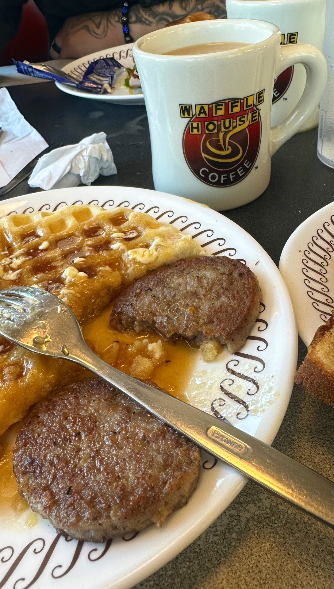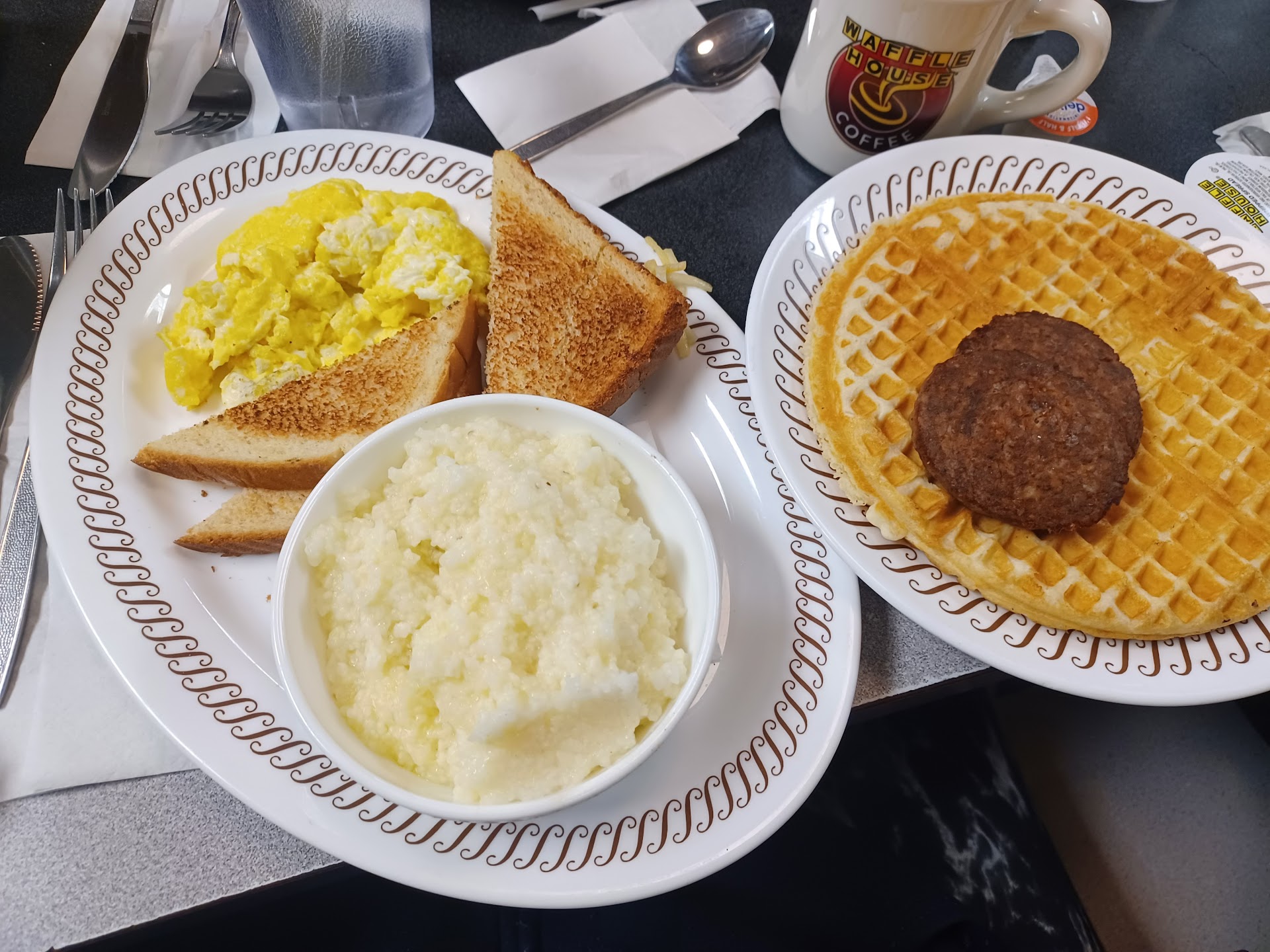 9/20/18...The southern hospitality was certainly in this place and it erupted from all facets of life and cultures. I enjoyed my fellowship with the warm and friendly staff, even enjoyed a laugh with the cook himself. The food was amazing, as I truly enjoyed my cheesy grits. I kind you not I am not a fan of grits, but for some reason I chose to taste my husband bowl of grits and they were instantaneously mine. I of course ordered him another bowl since I couldn't put his down. I would be remiss if did not tell you about my flavorful and moist chicken breast patty. My husband is a huge chicken fan and so I felt obligated to share it with him. "Hmmm" is all he had to say. And lastly, our waffles, like most breads, it just taste better hot and fresh, so I recommend adding hot syrup to enhance your waffle experience (smh). The waffle was good, it reminds me of a recipe sold in a Waffle House back home in Los Anfeles called, " Roscoe's Chicken and Waffles" which I very much enjoy, however the wait time can be super lengthy and so I subject my taste buds to some other alternative. It was great finding that same great taste here in Colorado at the Waffle House - crowd free on a late Thursday Night. However, in a matter of thirty minutes, friends got word where we were dining after our Church Conference and decided to grace us with there prensce and we went from four at one table to four occupied tables deep. I guess you can say, they heard of the place and agree that the food is worth traveling for. Even now writing this review, I'm texting and seeking a driver, as I am a Colorado visitor for the next 48 hours to take me back to that place of yumminess. I am craving another side of cheesy grits.