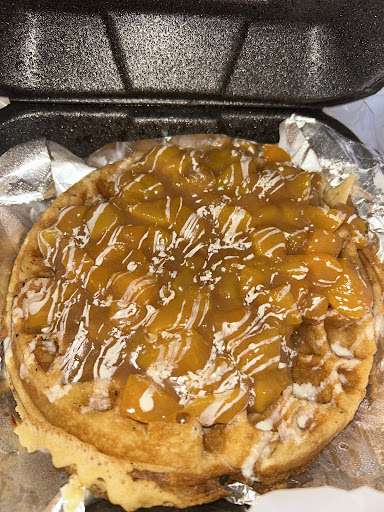 As for the food, the fries were good along with the strawberry lemonade but the rest of the food not so much for my personal order. The peach cobbler waffle was extra soft and more like “wet”. The cobbler consisted of a lot of pieces of peach cobbler way more than they advertised in the picture which likely made my waffle wet. I should have gotten the red velvet waffle. It wouldn’t have been soggy.
