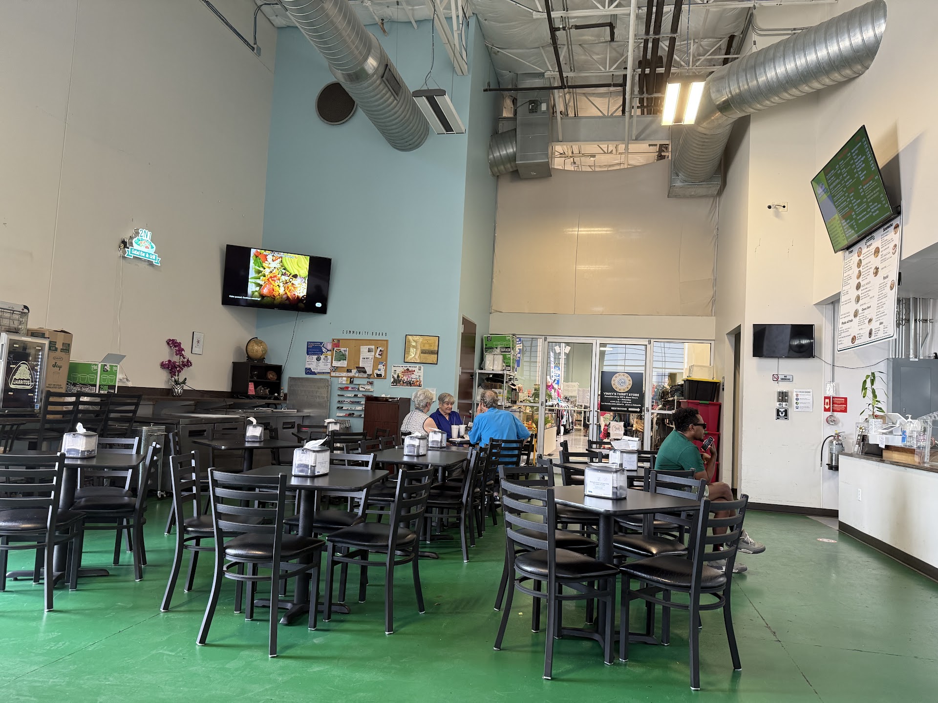 The chicken quesadillas had a great flavor but the chicken was soooo dry and hard, I picked it out. The lettuce, sour cream and guacamole that comes with it were a great compliment but not enough and they threw in big chunks of unripe, hard, flavorless tomatos, probably not organic either. I had to bring out my own sour cream and salsa to finish it because of how dry it was.