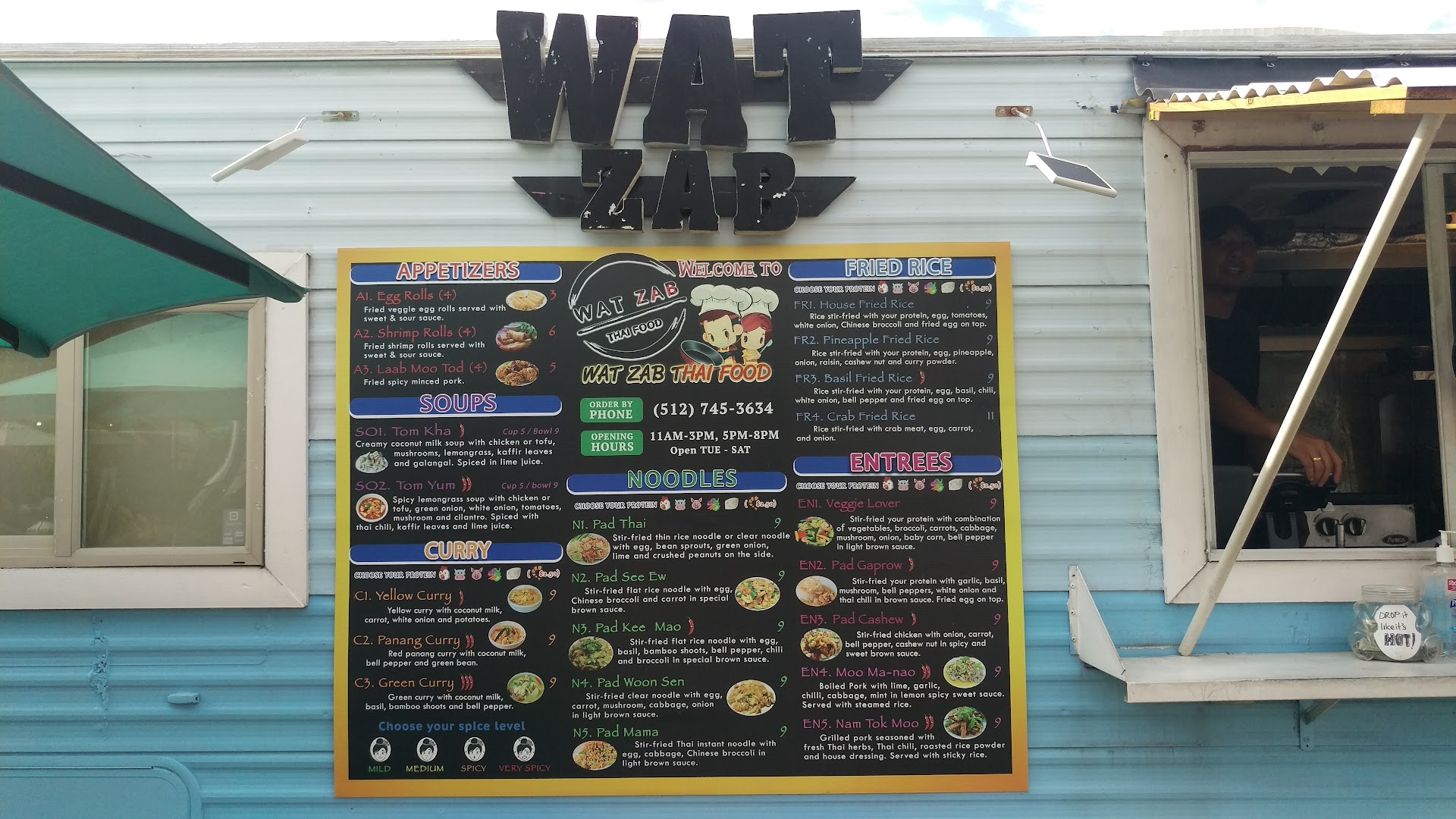 We ate at Wat Zab, and it was amazing! I never thought I'd have Thai food from a food truck, but man I'm glad I went out on a limb and tried it because it was wonderful! I had the beef Pad Thai and my buddy had the chicken Pad Woon Sen. We each tried each others food and were suitably impressed. All in all, Wat Zab is great and I'll definitely go back next time I find myself in Austin.