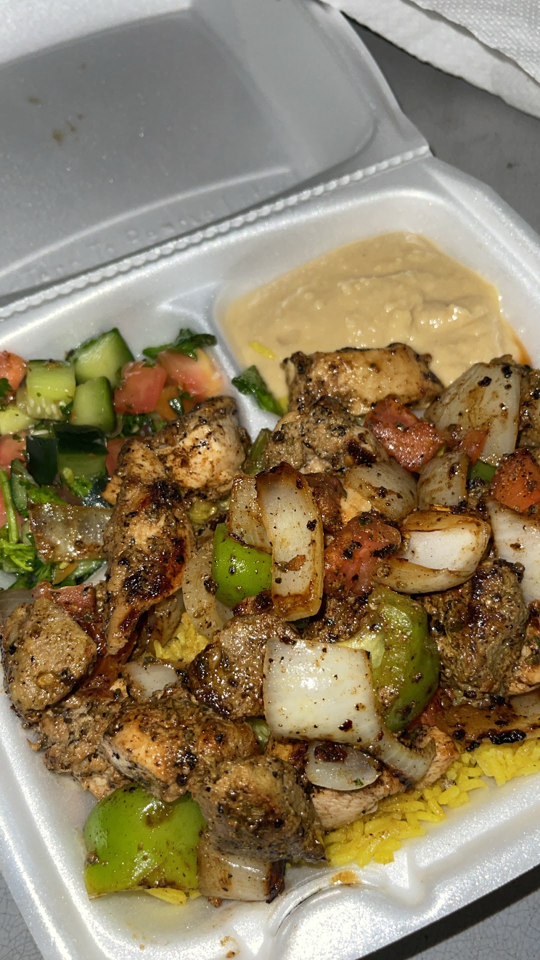 I ordered a chicken shawarma expecting something flavorful and fresh. What I got was an overpriced mess. The only thing this truck seems to know how to cook is chickenâand even that was dry, bland, and left a weird aftertaste. The rest of the plate was either soggy, rubbery, or completely flavorless. It honestly felt like cafeteria leftovers dressed up as street food.