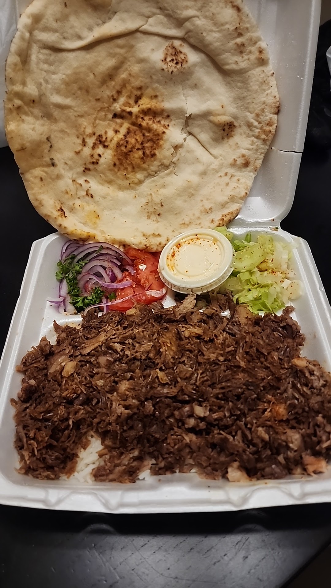 Side story about Al Demashqi's Meat Hummus: At most places, meat hummus means a container/side of hummus with a small scoop of ground meat on top. So, when we opened our bags & boxes and didn't see a plastic to-go cup with a scoop of meat, we thought it was missing. I walked back to the counter and asked if it was missed. The chef told me he was sure he'd made the meat and the meal, double-checked all his surfaces for it, and then asked me to look again for the box with meat on hummus. His emphasis on meat changed what I was looking for. And he was right! Our order was correct, and there was so much meat that the hummus was buried! It looked similar to the attached picture of lamb shawarma, including pita, sauce & vegetables, but hiding under all that delicious meat was an equally large portion of delicious hummus. It was so tasty & so filling that we stuffed ourselves and still have plenty for lunch today.