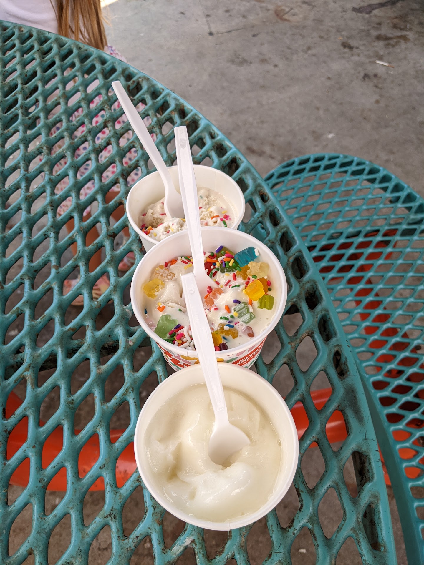 The parking is good for the area and the service was very quick despite the small area the shop has indoors. The outdoor area is very nice to spend time at on a hot day with tables with umbrellas. One thing I will preface that last part with is the fact that this is a VERY kid friendly location, they even have a playground there. We brought our dog with us to sit outside and with a bunch of kids running around, you can guess where I’m going with this. This obviously is no fault of the ice cream parlor, just potentially something to be aware of.