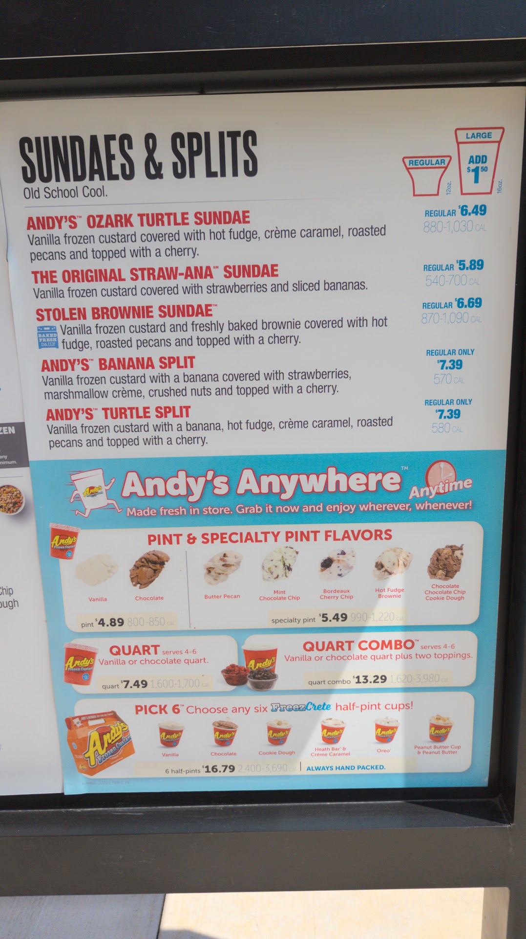 Read moreEDIT: I'm updating my review from 3-stars to 5-stars after the owner reached out to me personally by phone to discuss my review. He asked if we would be willing to try Andy's again, which I said yes to, and the next day, we were able to receive four complimentary items. We tried the pumpkin pie one he recommended with caramel and pecans and it was amazing! Honestly, just the fact that a franchise owner cared enough about their service to reach out personally is enough to warrant a 5-star review.