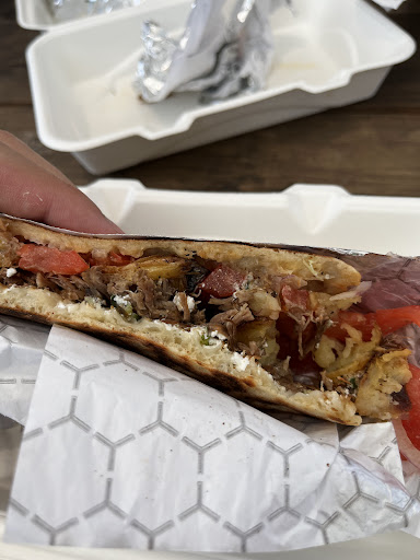 The Aphrodite is slow-cooked lamb with veg, and the PERFECT amount of honey that really adds depth to the flavor of this pita sandwich.