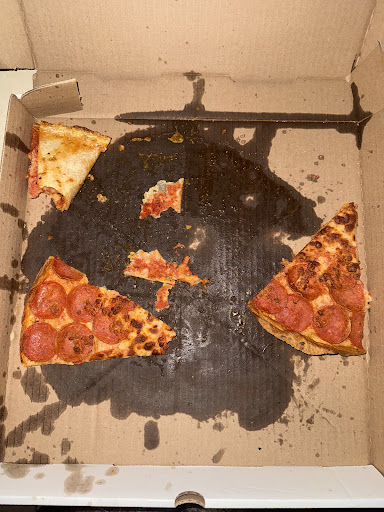 Read moreOrdered 2 large pepperonis to go. Flavor of the pizza was fine - pretty average and nothing to complain about. But this was the greasiest pizza I have had in recent memory. Pepperoni is naturally a little greasy as a topping but this was a lot. Grease actually pooled and dripped out of the side of one of the boxes. The picture posted is from the next morning and you can see where it pooled and ran out of the side and how bits of pizza are literally glued to the box by the grease. 3 stars because the pizza doesn’t taste bad, didn’t make me sick, and I had a sweet coupon but minus 2 stars because the pizza floated here in...