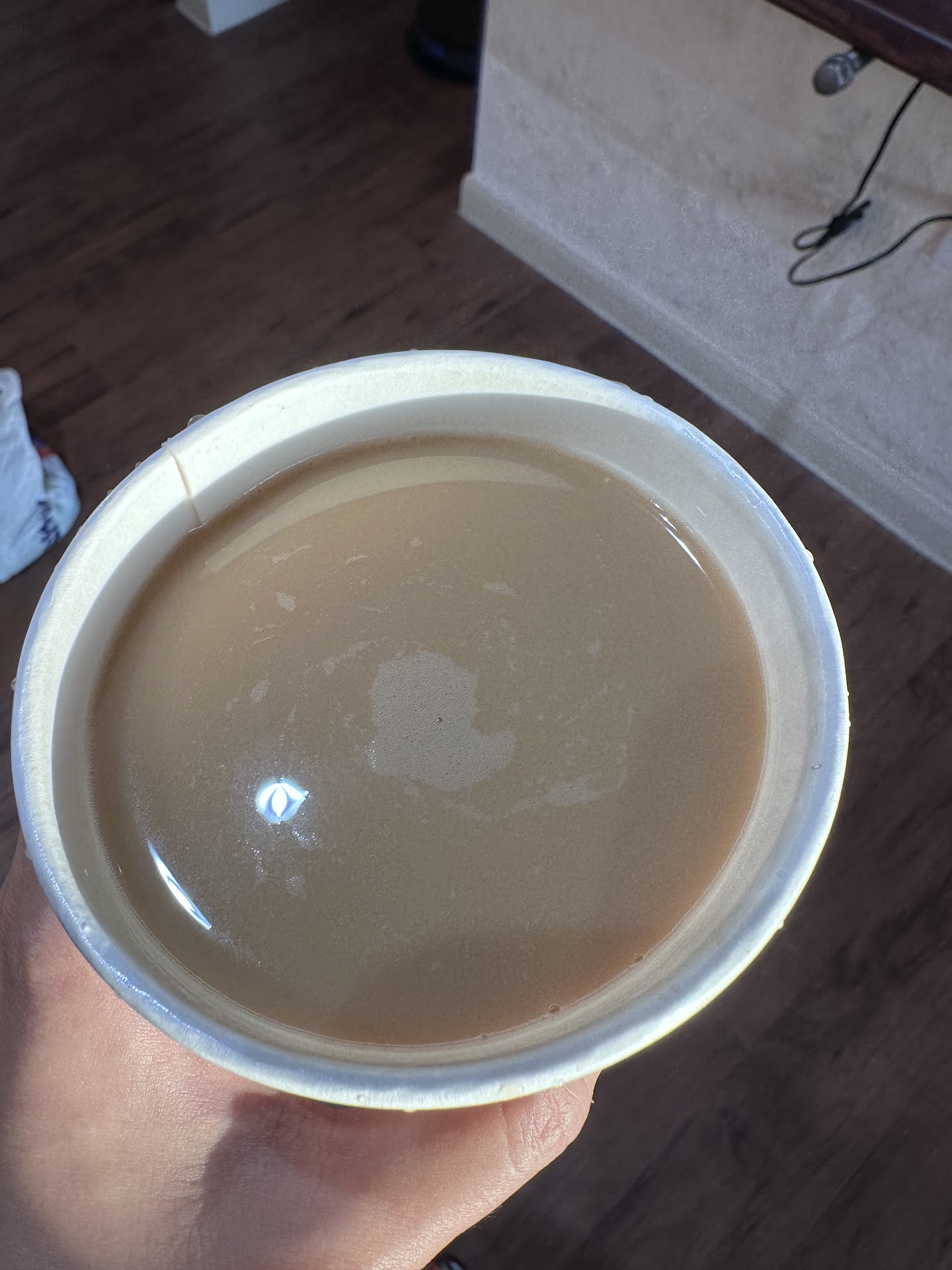 I ordered a 16 ounce Americano, not iced, with oat milk. They allocate the milk, and they got the right milk alternative. The drink felt like it was over 200 degrees. Glad I wasn’t driving I may have spilt it at the shock of the temperature. I expect drip coffee to possibly be that hot to hide the burnt cigarette flavor but not an espresso drink. The flavor was nutty as a primary flavor before it cooled down. After it cooled a bit it barely tasted of coffee. It was probably my mistake for ordering the 16 ounce, it was probably the same amount of espresso in each size just more watered down. It was so watery I ordered an espresso shot after to fortify, that also came out incredibly hot, and tasted watered down when I tried it before dumping into the Americano, it barely added any coffee flavor. Honestly not the worst Americano I’ve ever had, but I had to reach for the memory of something worse.