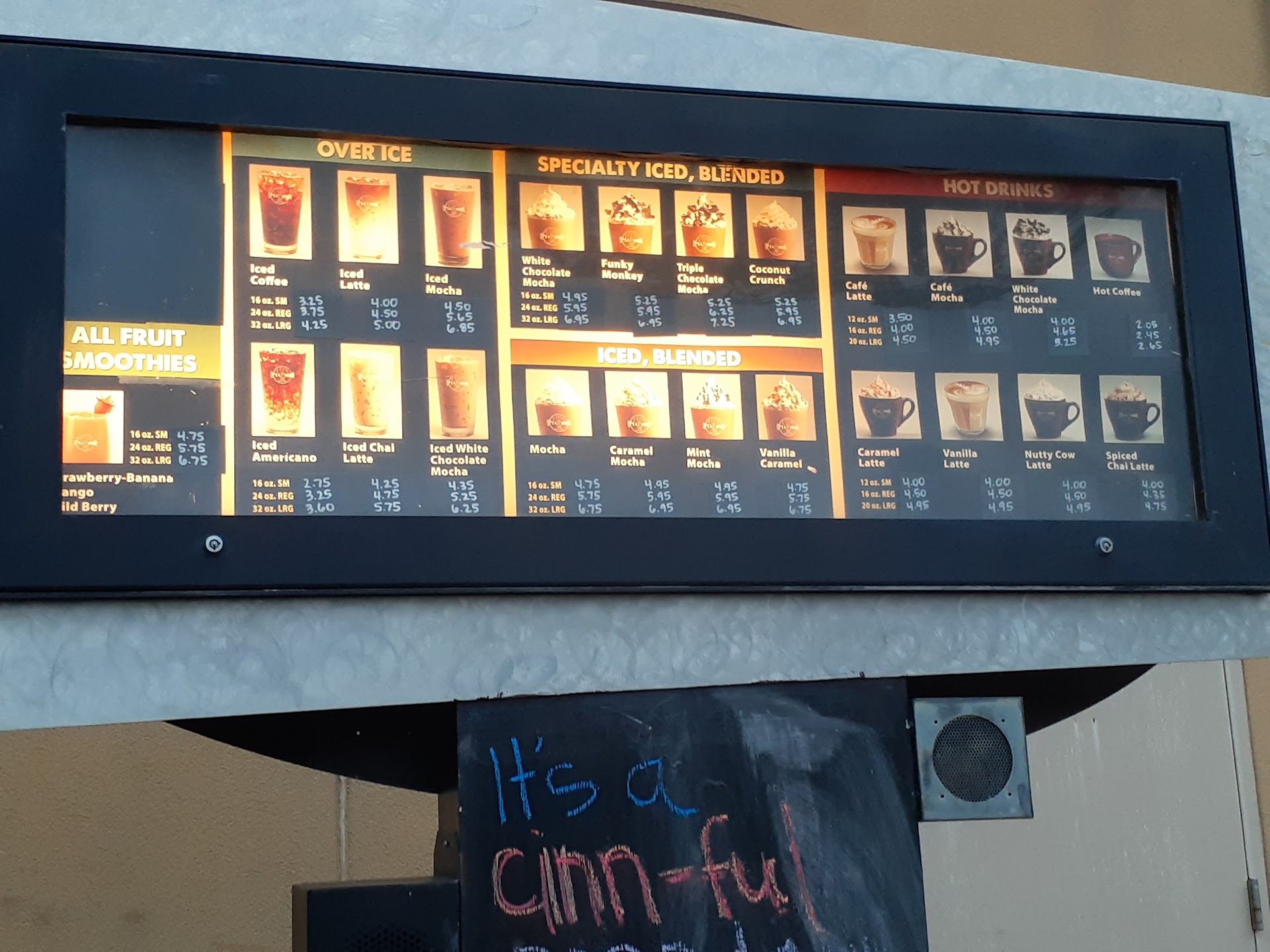 Inconsistency. Every other time I've been there, my order has either been wrong, lukewarm, under-filled, or a combination thereof. Several of the times I felt like I was speaking Sumerian, because what I ordered and what I received weren't even remotely close. The last and final time, I ordered a large double dirty chai, was handed a blended mocha java rush ten minutes later. They ended up giving me a freebie card as an apology this time, but by that point I was just done. Still haven't used it.