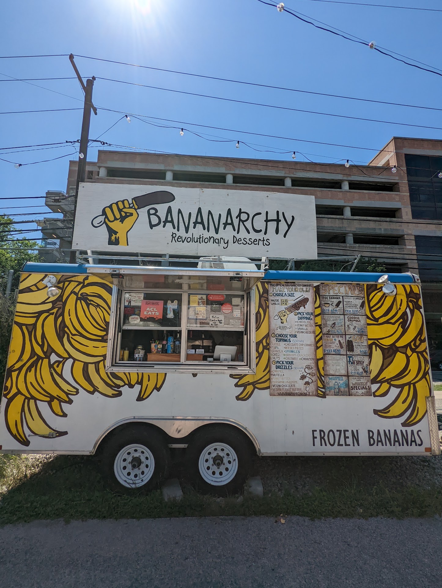 We waited for over 45 min on Thursday 9/6 night. Girl working took 25 orders before she started making the orders. The bananas left more to be desired. For a half of a banana it is $4.00. I get that there was only one person but she could have made the orders as they came in, rather than keep us waiting. After our 3 people, larger groups came so we had to wait until everyone's orders were placed. Got a parking ticket because we didn't realize that it would take longer than 30 minutes just to grab a frozen banana. We are in Austin a lot and would never go back because of the service alone. Not to mention, they were hastily made and looked nothing like the photo advertisement on the menu board. $75.00 ticket on top of $19.00 for 3 half bananas was a little too pricey...