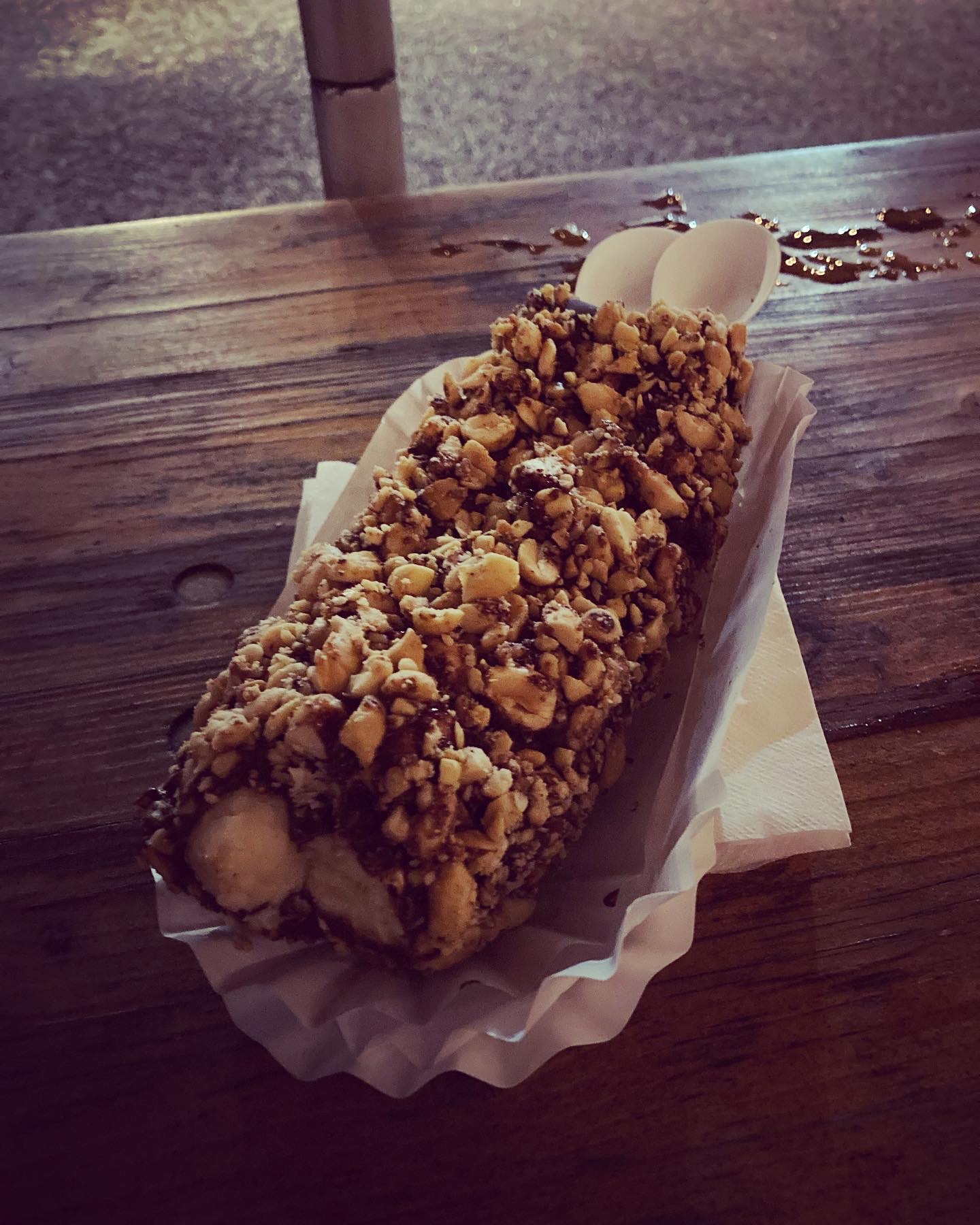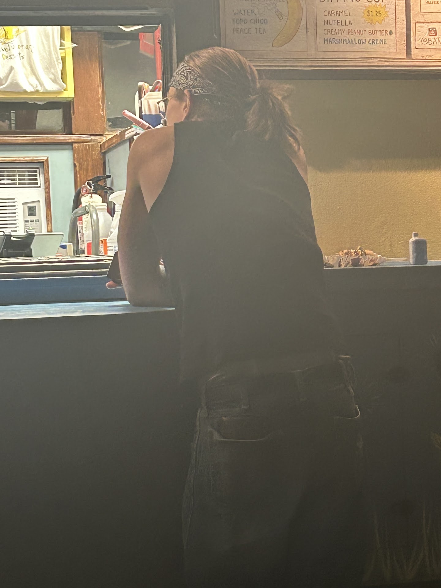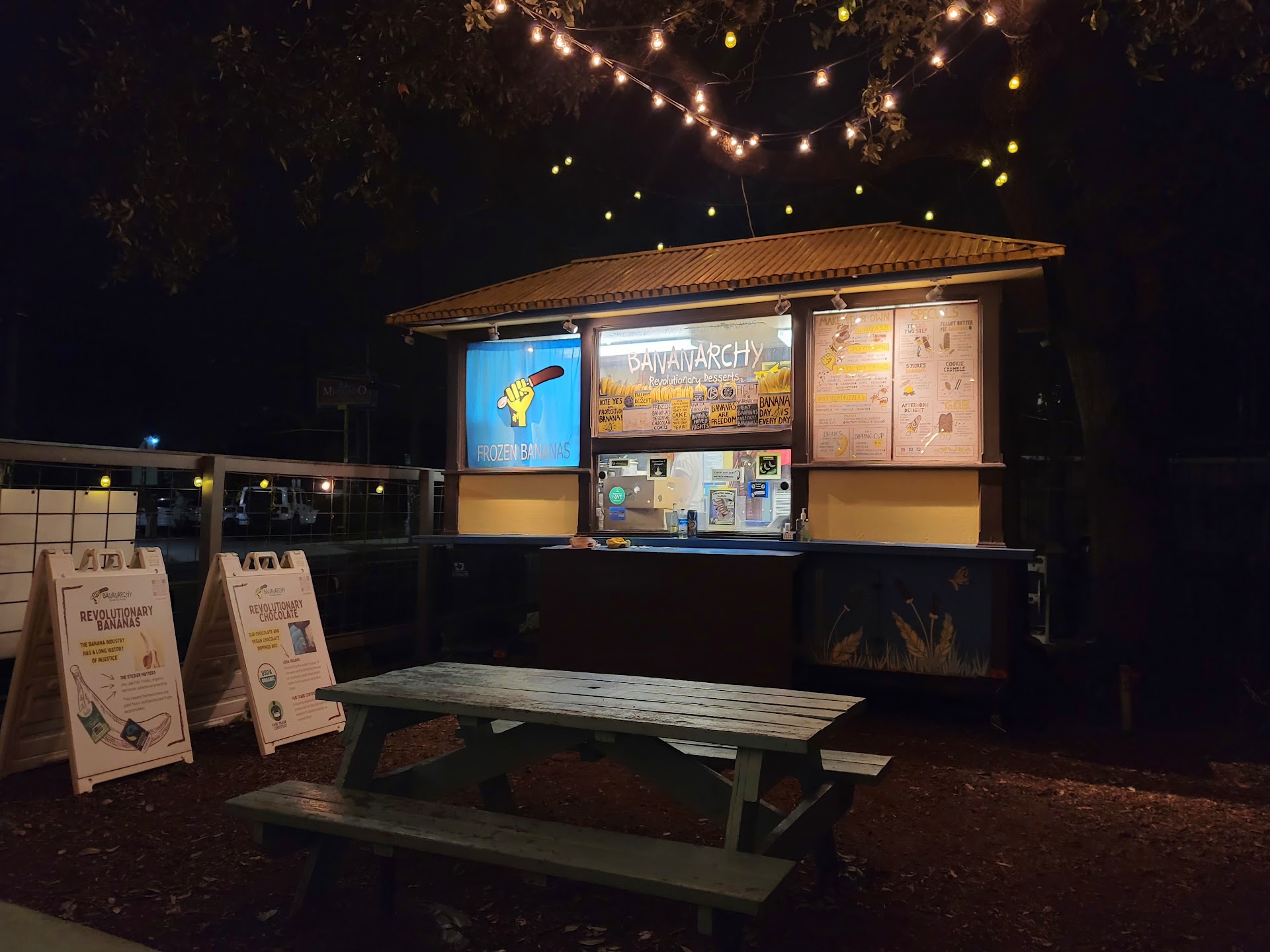 Read moreTuesday (10/17), I had my first bananas from here. They were FABULOUS - but this review is unfortunately not about the food. I arrived pretty late, about 15 to close. Nobody was inside the trailer, not an issue - I’m sure the young girl was busy. There are five people around me eating bananas and I ask if the place is closed, I express a little frustration that I might not get to order. For unknown reasons, this really upsets a man who seems to know the girl working (or wants to) and he relentlessly bullies me in the dark, screaming obscenities at me. I tipped the girl who eventually made the bananas, but I really don’t like how she never once cared about my safety, asked if I was okay, or even asked the man to stop. He stayed there alone with her when I left. I hope she is okay and that staff is aware of how to make customers feel welcome and safe, even late at night. Really bad experience but again the bananas were good. If you’re a man with a ponytail you’ll have...