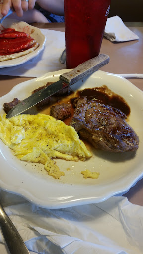 Ok, here we go: Pros: Had flavored creamer for coffee, service was fast, food came out quickly. Cons: Food: I asked for my eggs "not runny", and they came out runny. I also bit into several pieces of egg shell... Food server: She was busy (and they were probably understaffed), but she also was not welcoming, never asked how everything was, actually yelled at a regular, and balked when I asked her to break a $10 bill (so I could give her a tip)... Restrooms: Women's restroom had an awful, dead fish smell to it, and was not very clean....