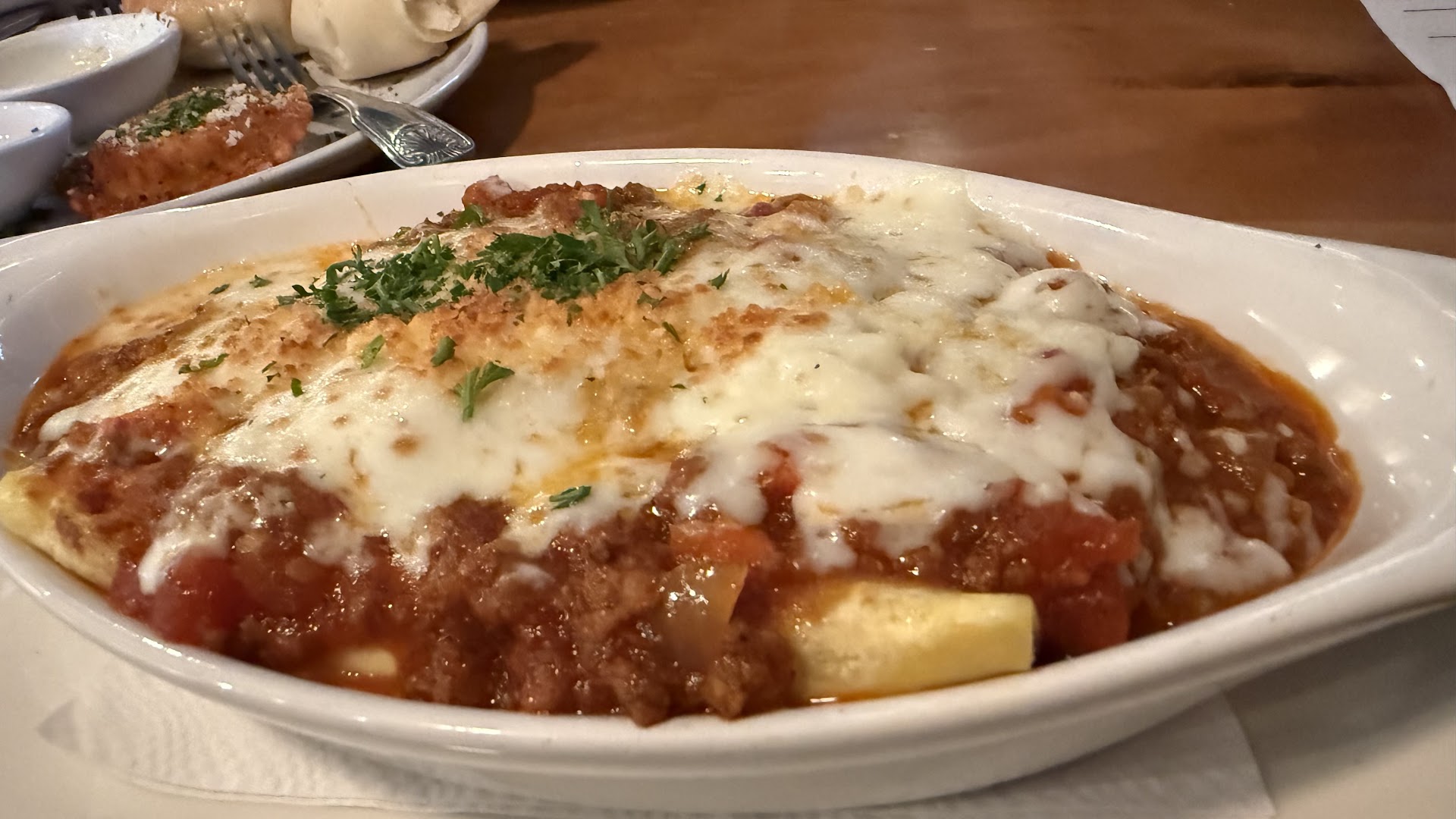 This restaurant is pricey vs the quality. I will spend too dollar for excellent food anywhere, even if the portions are smaller. With 4.9 Reviews, I expected this to be pretty authentic for the environment & area. presentation was decent, but I ordered a Basic Cheese Pizza with Xtra Pizza Sauce—-I received Salt with Lower Quality Cheese, Sauce & a Very Nice Crust. That being said, they comped it (removed it from the bill), but they suggested not to have it remade because it would be the same exact taste, etc. There’s a balance with SALT, that was excessive, inedible with the exception of the Crust. Now for the Manicotti: ordered it with Bolognese (no Pork—great for those who don’t eat Pork Products), but again—excessively SALTY, which gives no room for taste; overwhelms the palate completely. Besides that, that Bolognese had Chunks of Crunchy Carrots, Crunchy Celery & Chunks of Undercooked Tomatoes with the Tomato Sauce & Meat. Pasta Texture was also off. I don’t want to say it was previously frozen, but the quality of the pasta wasn’t there. Fettuccine Alfredo with Fried Filet of Chicken: Alfredo Sauce was okay, along with the chicken, but nothing special—especially vs the price. That was a $25 Dish. Penne with Marinara, acceptable, but basic: $17. Fried Ravioli: Okay, but Edges were over-fried, gave the texture of a fried, frozen product. I get it, it’s a service, but those prices aren’t justified for the quality. I’m not trying to bring down the ratings of the restaurant, they’re good people, but it’s not authentic Italian(-American) Quality. I’m also not advertising for others, but I’ve been to Maggiano’s in the Domain several times & that’s better and least expensive; and Maggiano’s is not really a go-to Italian Restaurant. Overall: Very Good Customer Service, Basic Food and a Heavily Salted Dish that wasn’t worth the...