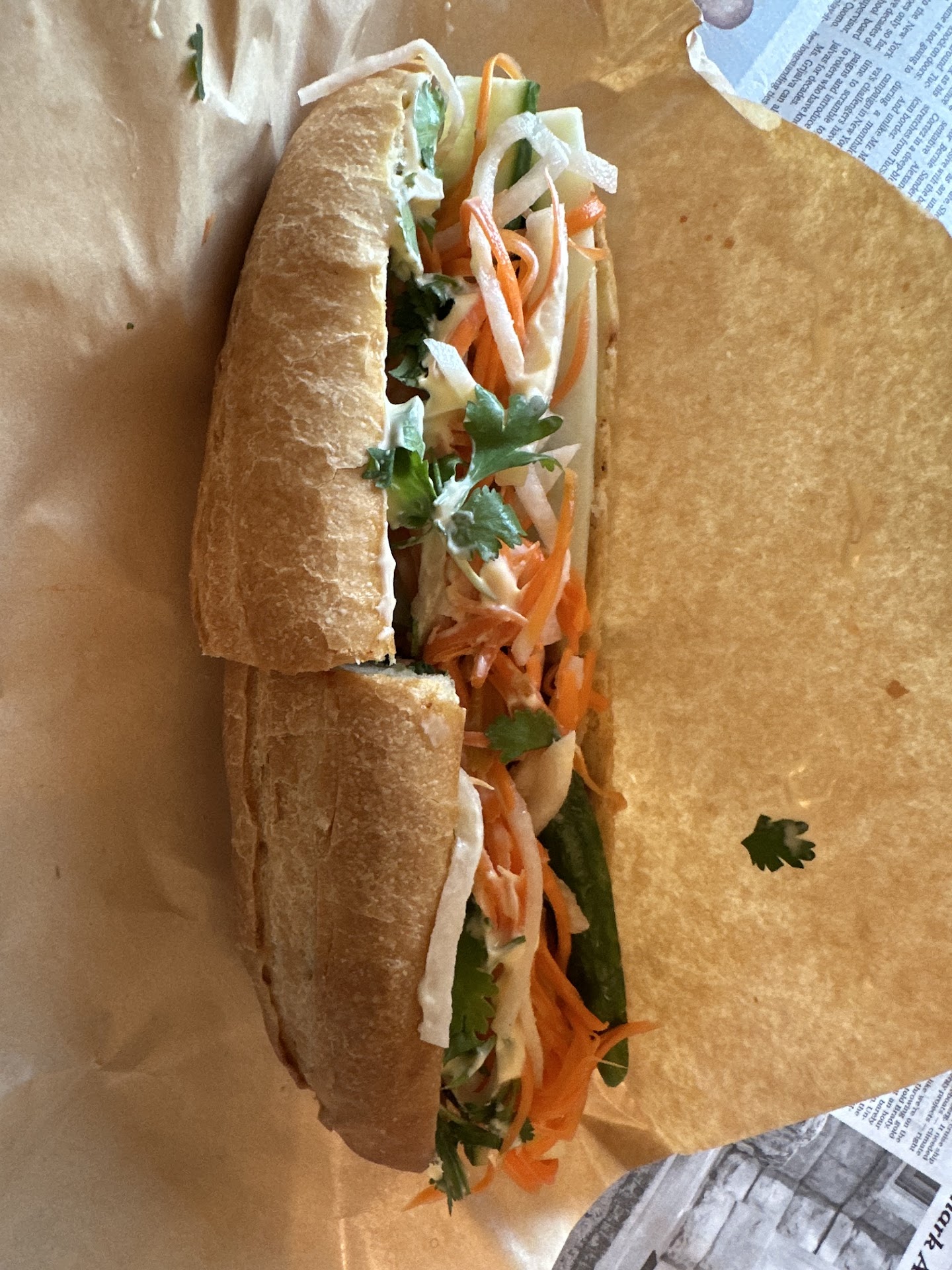 I got the Nom Pahng pate sandwich which is one of two "banh mi adjacent" sandwiches they offer. It was fresh and the tasty and the baguette was perfect, which is a real feat considering it is pissing rain right now.
