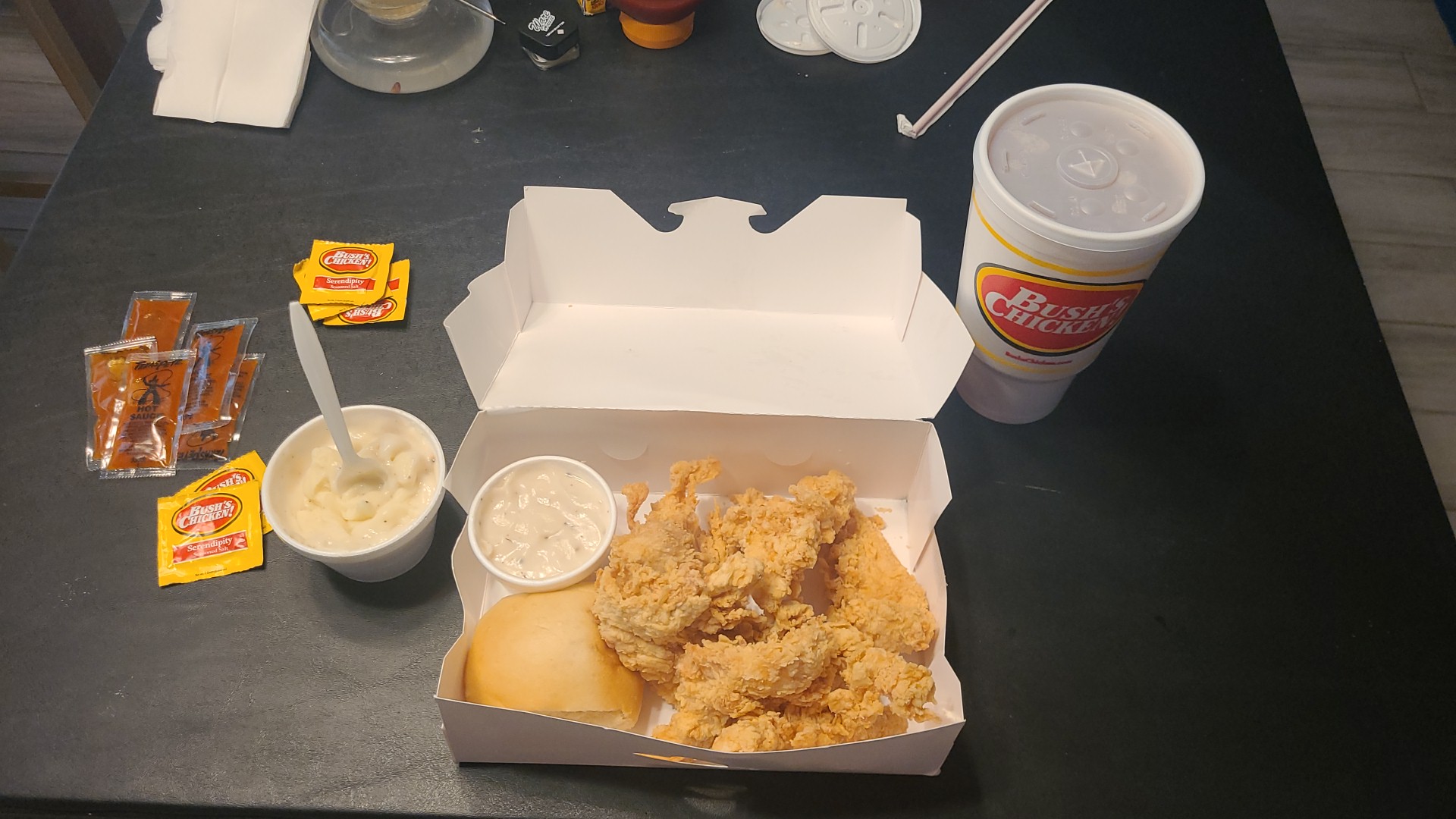 Ā Ā Ā Read morePulled into the driveway, ordered and gave the young lady my card so the she wouldnāt have to double back in the cold with no jacket on.... while they were preparing my food a guy that appeared to be the cook walked in front of the window from the back with no mask on. To make it worse he began eating over the line where they box your food with no mask or gloves! Just straight picking from what was in front of him and stuffing his mouth! The employees next to him working on other orders didnāt appear to say anything nor be bothered by him not wearing a mask. I even watched a manager walk by and say nothing to him about his mask! I get it staff have to eat but can you do it in the dinning area away from the food?! When she brought the food out i explained to her what i saw and without hesitation she did her best to make it right (the only reason the get 1star) She stated that she would have the manager take the charges off but i was given no receipt of this refund. I finally mustered up the courage to grab takeout during covid and bushes has ruined the opportunity for that to ever happen again. If you are going to be open during a pandemic PLEASE REQUIRE YOUR STAFF TO WEAR MASK...