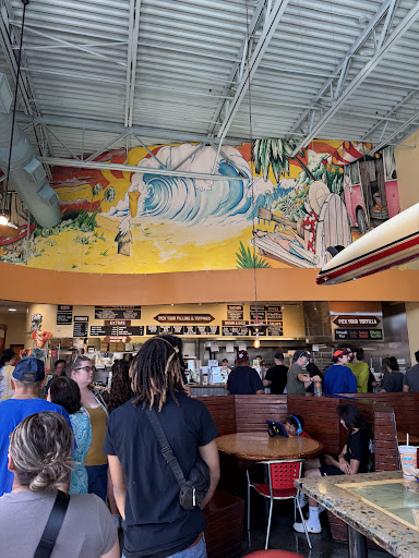 The nearest Cabo Bobās is about 30 mins away for me. That is 30 minutes that Iād be willing to go out of my way, once in a while, because that burrito was just so good! So good that I have to break my Google Maps review rule by giving this place 5āļøs without knocking any stars down despite the utter lack of any veg/vegan protein options (Cabo Bobās - please add something to the menu for those of us that donāt eat meat; like Tofu, Seitan or Tempeh!). What makes the burrito so good? The tortilla, the pico, and the sauces+salsas. There are also other fillings to choose from, of course, like beans, rice, veggies, meats etc. The soft, warm tortilla is made fresh in front of you, and you can pick one/a combination of 4 options: Buttermilk Flour (White), Cilantro Tomatillo (Green), Ancho Chili (RED), and Smoky Cheddar (Orange). I got the cilantro tomatillo + smokey cheddar, and it was probably the best tortilla Iāve ever had. Per their website, the tortilla dough is made from unbleached, untreated wheat flour and Rice Bran oil, which is much better than all purpose flour. The mango pico was fresh, tangy and delicious. The red salsa, chipotle crema and 66 red sauce were a super tasty combo. Given they have zero veg protein options, I picked the gilled veggies (zucchini/squash), which were ok. The size of the burrito is large enough to make two meals out of it, or just one big meal for the day. They have stations where you can grab napkins, extra sauce, dispose of your trash, return the food baskets, and they also have convenient to go boxes with lids to pack over extras. Seating: indoor booth/table & chair seating and high top tables, outdoor seating has covered picnic benches. Ambience: simple, casual/beach-y?, good energy, constant flux of people ordering/picking up food/eating.