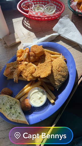 Sadly, the food was incredibly disappointing. We had the calamari, the fried alligator, and the gumbo for appetizers. The breading on the alligator was flavorful enough, but both fried items were painstakingly chewy. The "gumbo" was practically celery broth with rice and baby salad shrimp. Flavor profile was entirely absent and to be frank an insult to what gumbo is supposed to be. For our meals we had the combo basket with fried fish, the broiled scallops, the scarlet snapper, and jumbo fried shrimp. The fried fish was very thin cut and mediocre. The jumbo shrimp were in fact average sized shrimp that appeared flattened and were also terribly chewy. The snapper was supposed to be stuffed with a shrimp and crab stuffing, but apparently you have to request that separately. It did not taste or look like fresh snapper. It was overcooked and you guessed it, chewy. I suppose at this point I don't need to comment on how the scallops were... we had shrimp fried rice as a side, coleslaw and garlic bread. I didn't bother eating more than a couple of bites.