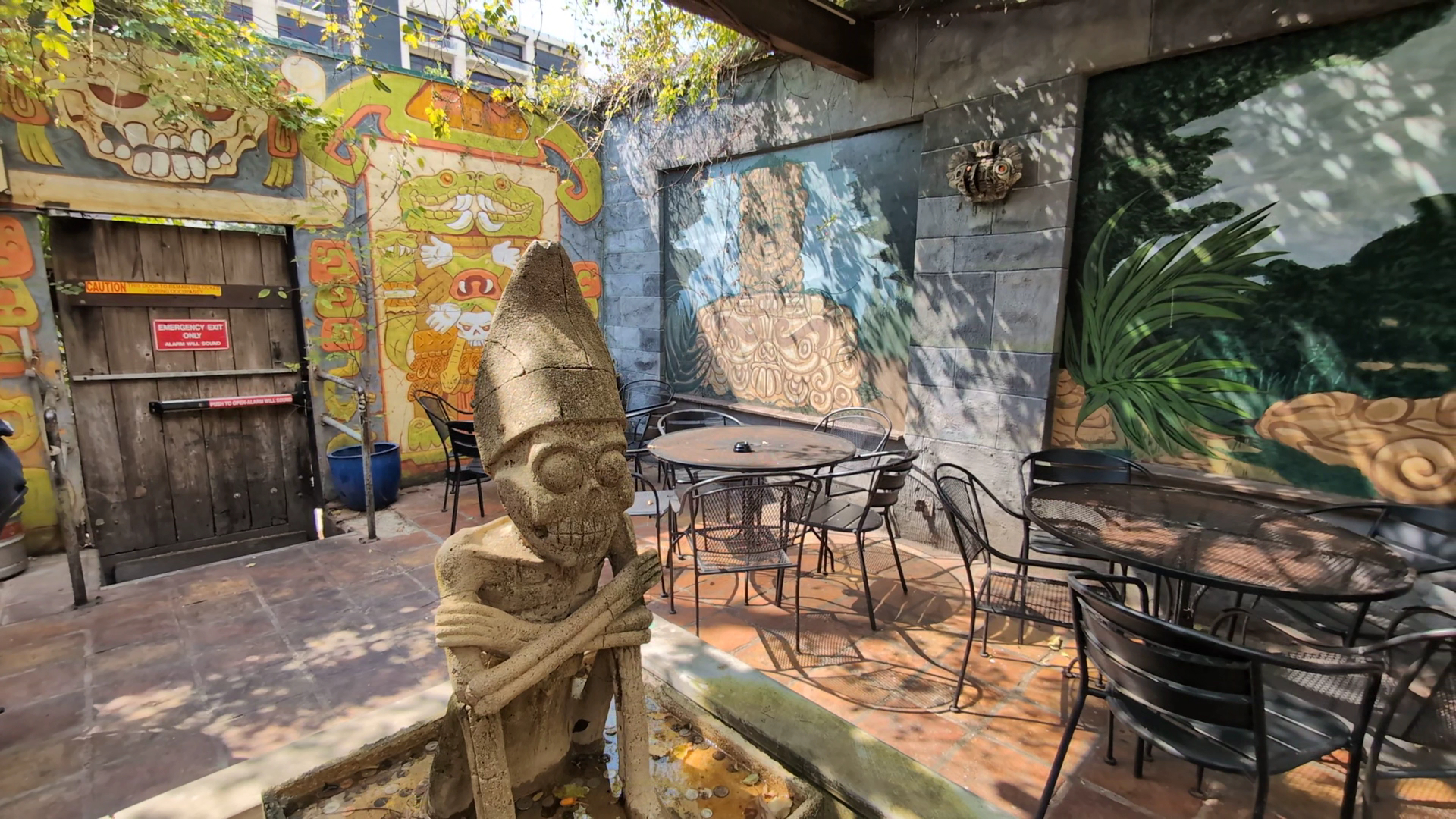 First off, the courtyard. Don’t skip it. Picture a Mayan death cult's temple, but with that unmistakable Scooby Doo 90s vibe—like you're about to be sacrificed, but also offered a last meal so good, you’d accept the deal. The black textured walls and weird alt-Goth decor inside make you feel like you're at a Bauhaus reunion show in 1997, except the sound system is exclusively dedicated to the best jukebox in town. Yeah, it’s that good—if your music taste spans American rock, punk, and anything that would’ve soundtracked a rebellious mix tape from your moody adolescence.