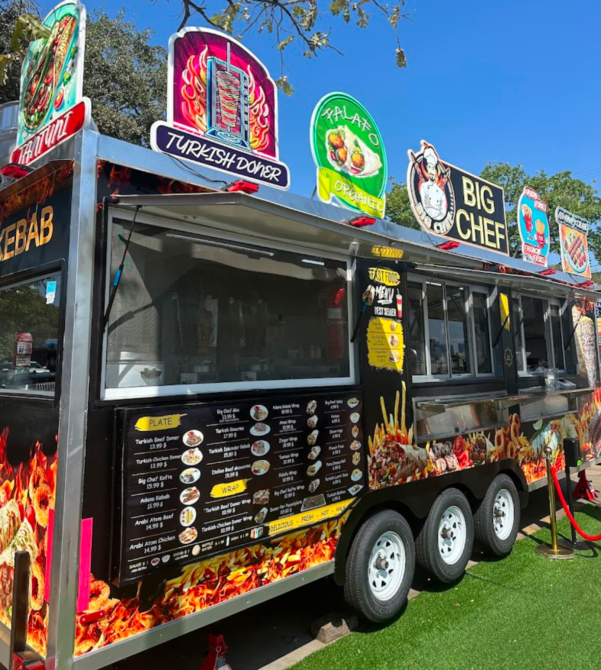 The menu offers a good range of options including Turkish doner, iskender kebab, and falafel wraps. Prices are reasonable for the portions (most items $12-17). The food truck is well-maintained and clean, with professional setup and lighting.
