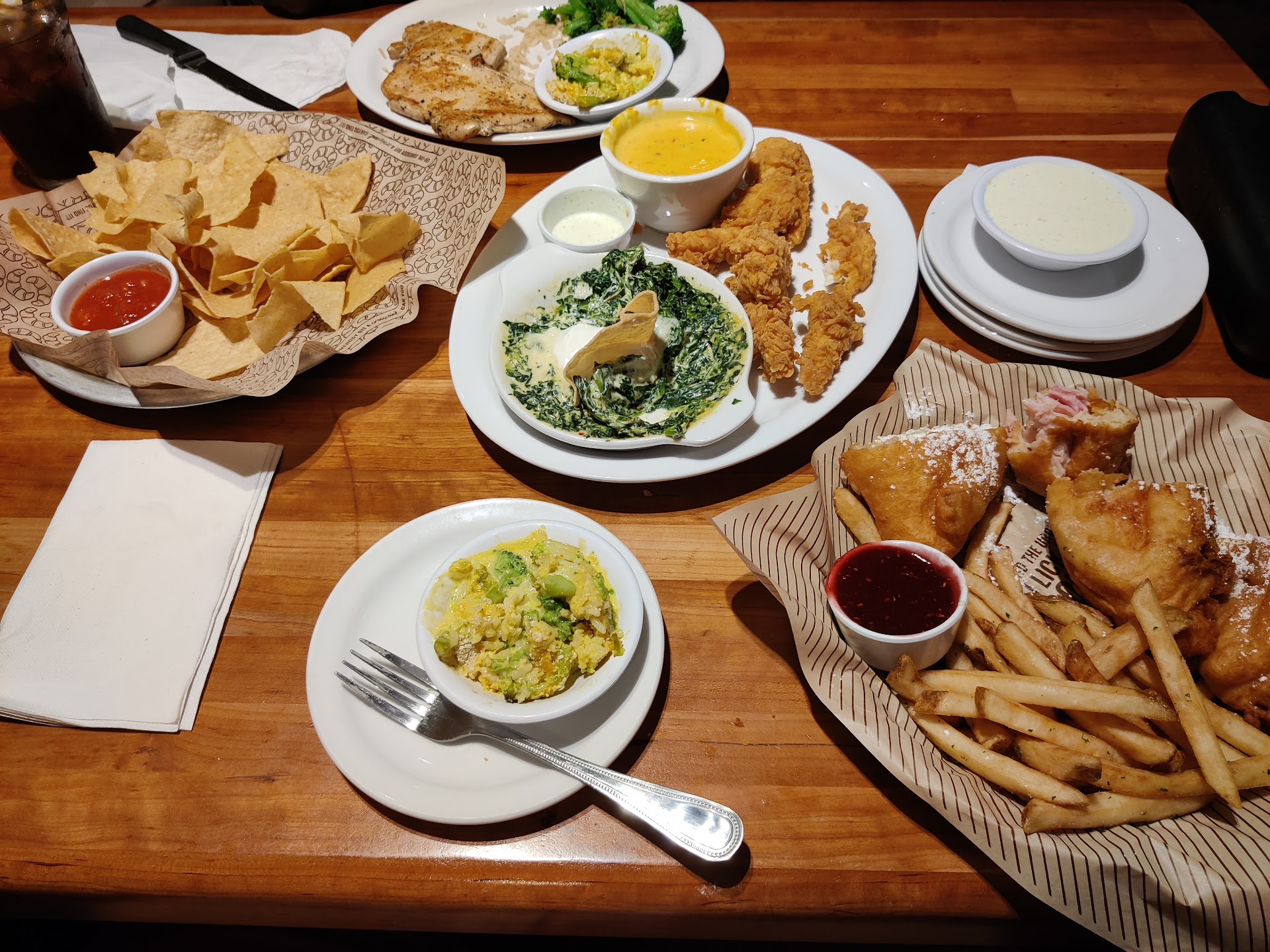 If you ever think to yourself I'm not adventurous enough when I try new foods, go to Cheddar's. In the entire hour and a half we were there the only things that were "negative" parts of our experience were three minor things. The tortilla chips for the queso and spinach dip were just not really anything that stood out. They kind of almost tasted like store brand tortilla chips. The ranch dipping sauce was a bit watered down for our liking. The flavor of the ranch was quite good, but if your ranch dressing is thinner than most pizza places ranch it's a little too thin. The last thing to mention is the fact that the french fries though they tasted good and were hot and fresh when I received them, 5 minutes after receiving them they were no longer good. They lost their freshness way too quickly and I couldn't tell but it seems like they're not double fried which would probably make them a lot more crispy and probably last a lot longer as well.
