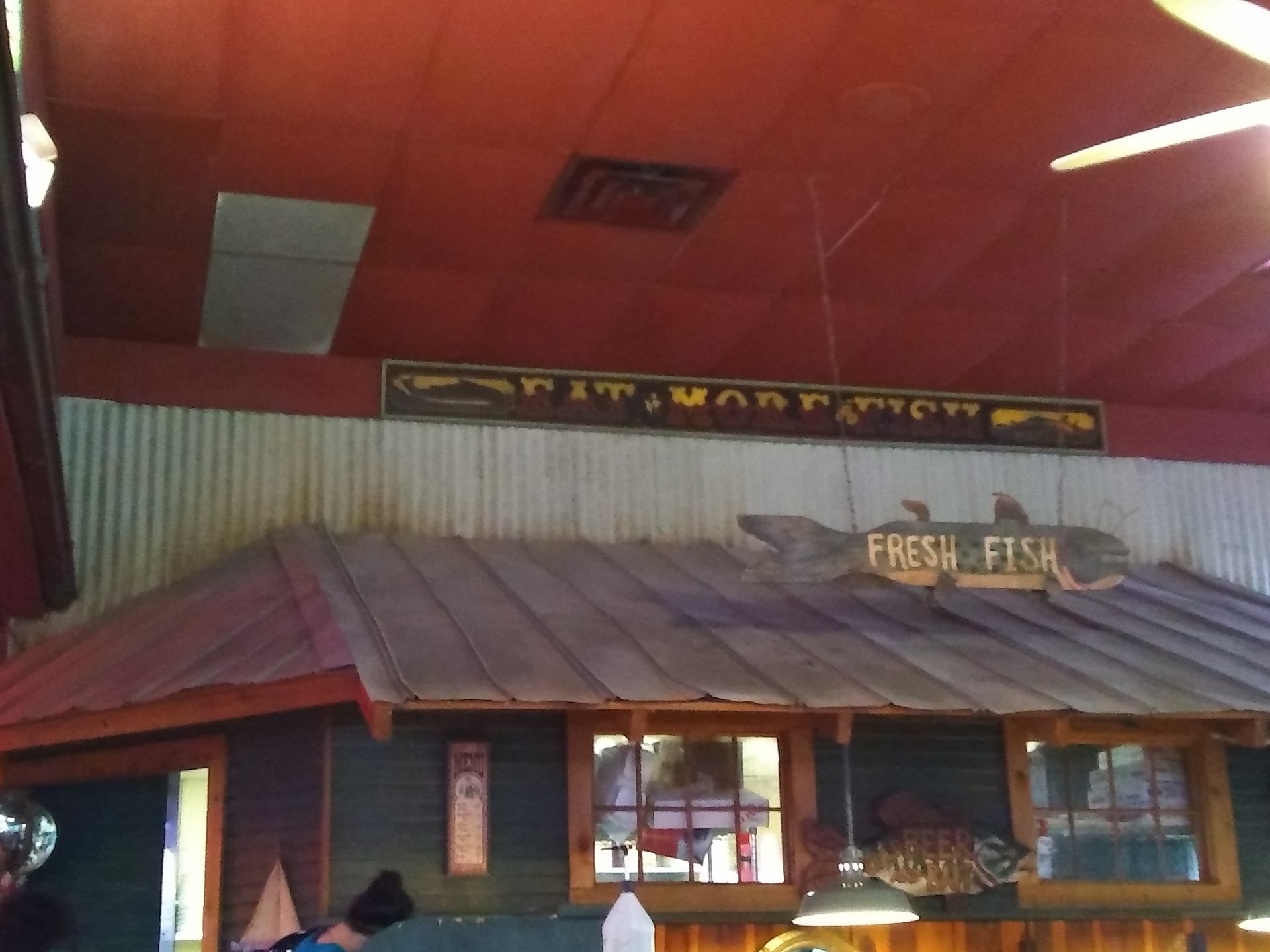 As I walked inside I noticed the place was very busy, but luckily a table was open. The place had great atmosphere and the menu had a lot of choices to choose from. I ordered the Catfish Po’ Boy which was four strips of fried catfish in a toasted roll with tartar sauce, lettuce and tomato, and fries.