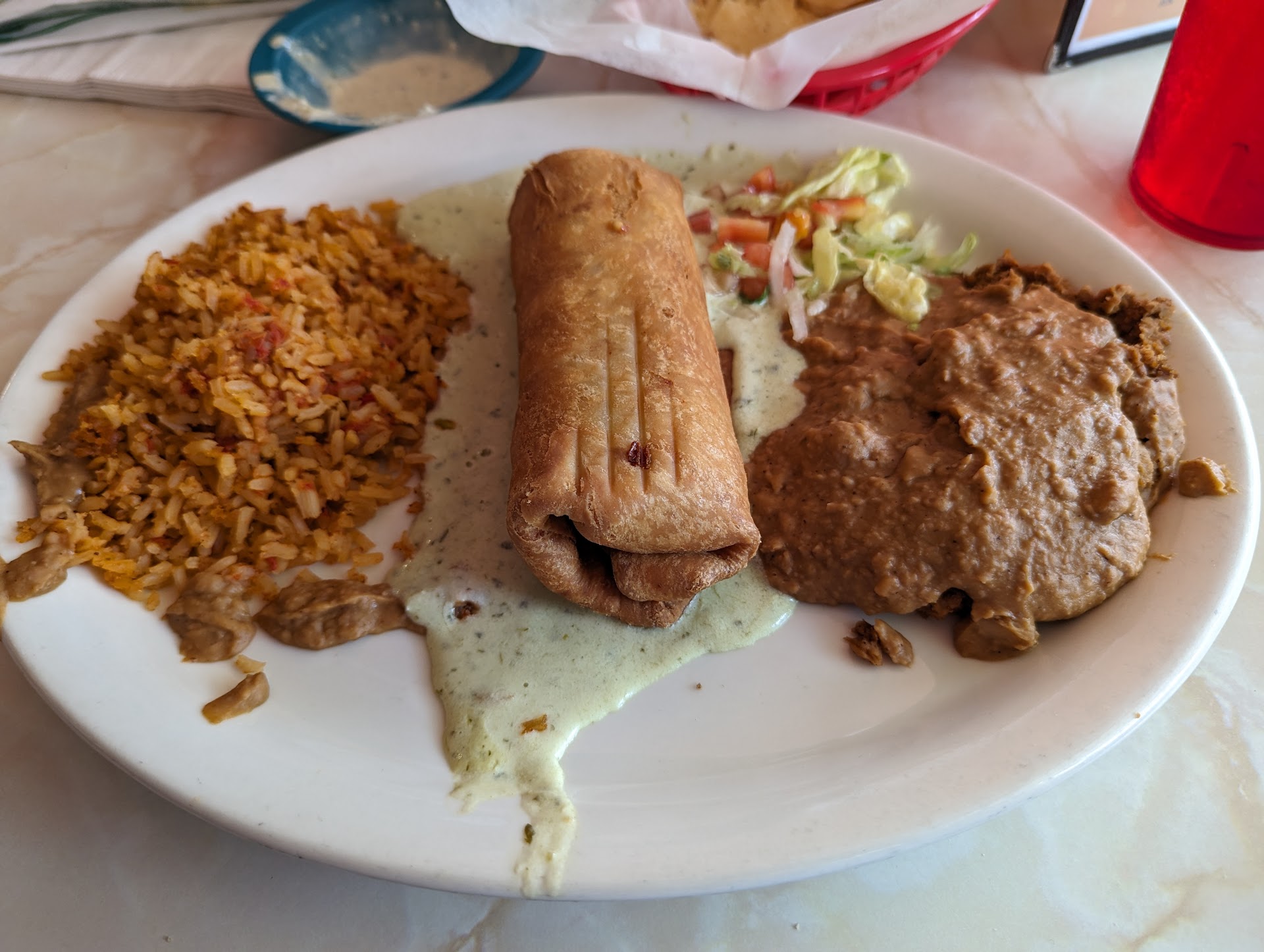 Read moreChuychanga I have been a Chuy's fan for many years, it's an Austin main stay. Chuy's has a unique and fun atmosphere, from the dog photos to the wooden fish and bright Mexican paintings, it's a fun place to eat. I love the creamy jalapeno salsa, if you don't automatically get it, you can request it with your chips. This location is a bit nicer than the others with a nice garden like outdoor seating area. They also have some interesting interior features like metal palm trees. Another distinction is Chuy's rice and refried beans. The rice is a bit more peppery than your typical Spanish rice and the refried beans have a unique flavor. It's likely the flavors are different because they are vegan, meaning no animal based fats are used, this can be a bonus for those with dietary restrictions. I'm a fan of the chuychanga, basically a chicken chimichanga. Had one recently and have to say I was a bit disappointed. Flavor was about right, but was much smaller, less juicy and with less cheese than I'm accustomed to. Upon my 2nd visit I had a larger chuychanga but a bit less cheese than expected. I guess there's a consistency issue. First time in many years I've had one like this, but could be due to the recent impacts of inflation. I'll have to try again to make sure it wasn't a fluke. My daughter had the tacos al carbon and she was satisfied with her meal. Didn't have it this time around but the queso is also a bit different from the typical. It's a chicken broth based queso and the flavor and consistency comes through. It's worth trying, but personally I like a cheesier flavor. In end, Chuy's is unique among TexMex restaurants and...