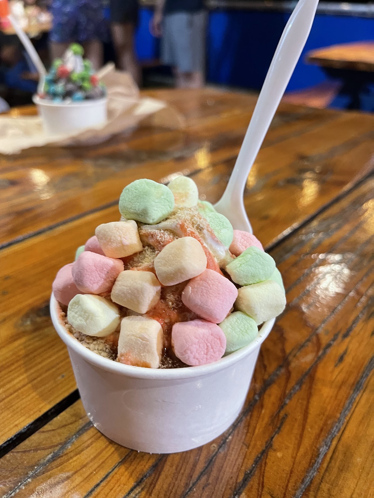 Read moreWe have wanted to try this for a while now; and finally had opportunity to. We were so disappointed. We got one chocolate swirl and a strawberry each with waffle cone. The best thing about was the cone. The “ice cream” was so gritty. Only way I could eat it was take small amount of “ice cream” with the cone. After few bites; we got up to tell the girl working the truck that it was really gritty, and tasted off. She said “oh ok, I may need to mix it more”. But, for $16 for two cones/cups I would have expected better quality. And, though she did apologize the service rating is only a 2 because once she even acknowledged there may be something wrong with mixture at least an offer of refund, discount on future purchase or something should have been offered. The atmosphere was nice as the location was at Garbos, with a nice patio, with clean tables.