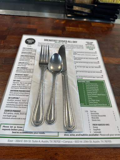 Came here w/a friend late one Sunday for brunch and the place was packed (very small seating area inside) and we were told it was going to be about a 30min wait. I absolutely HATE waiting for food, but my friend said that it was going to be that anywhere on this side of town. So we sucked it up and 30mins turned out to be closer to 15. We got sat at the counter (I'm guessing the origin of their namesake) and I perused their menu. It had all the basic Austin brunch fodder and fare. I love benedicts, so I decided to order the seared pastrami benedict since that was a first and I like to try and be food-venturous when I can. My friend ordered one of their blueberry pancakes and the thing was not only thick and ginormous, but the way they make it the blueberries basically melt into the batter. I had a few bites and, though I am not usually a pcake person, it was actually pretty damn delicious!