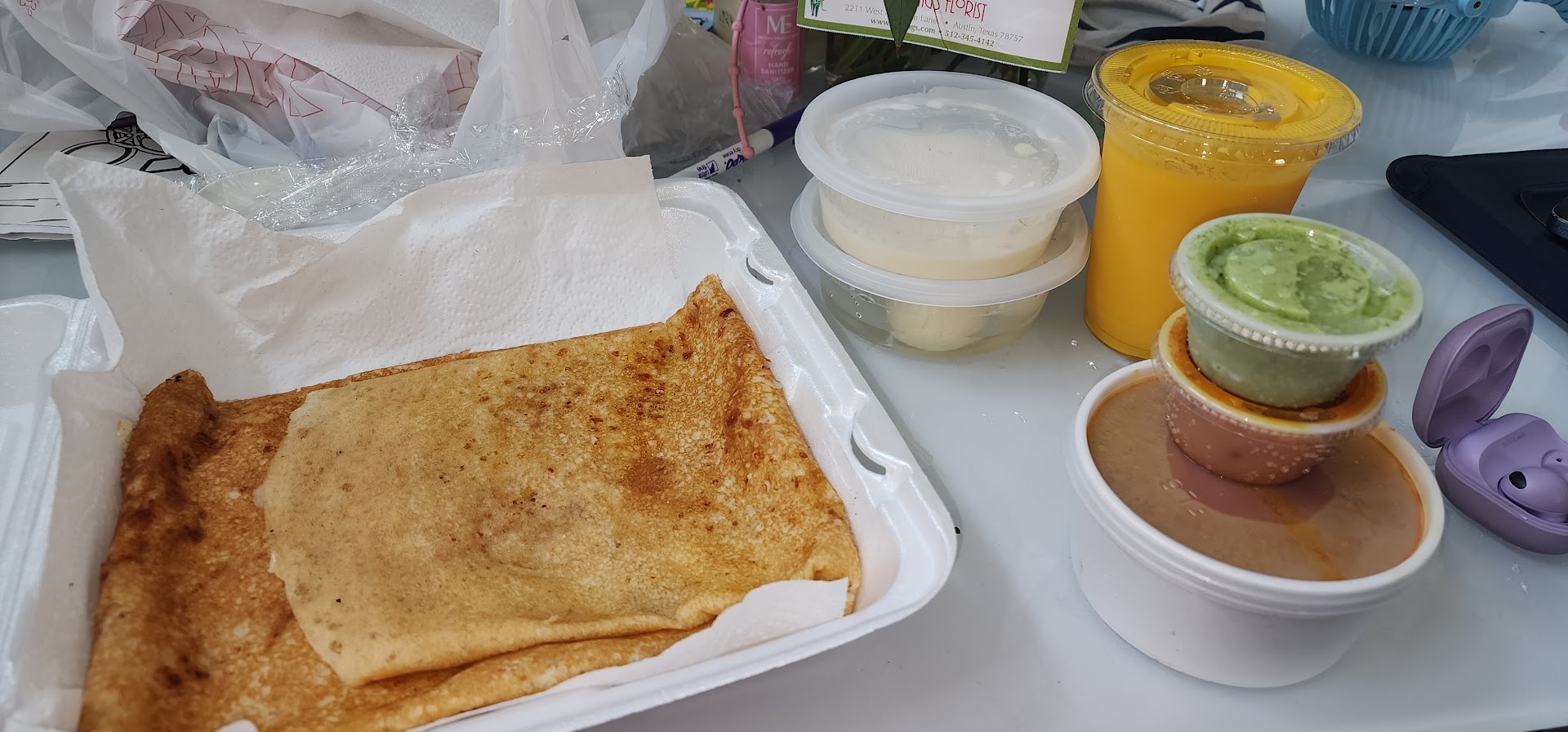Read moreI really don't like this place. I've come here a few times over the last few years because it's literally 3 min from where I work. It's always just been just ok. But now, they've taken their service and their food to a whole new low. no one acknowledged my presence. Not a hi or anything. I knew to order at the tablet, so I did. Cheese dosa, mango Lassi, and some dessert. After I pay, THEN it says it'll be 20 to 30 friggin minutes. I thought this was curry in a hurry?! after 30 minutes, I started walking around trying to find eye contact with someone. Someone came out of the back on her phone and did something by the cashier. Still no hi or anything. when I realized she was going to just ignore me as she walked back towards the back, I went ahead and did the excuse me, how long will it be? She said "soon" so I said, then can I have a refund because I didn't know it would take this long and I can't wait around any longer. "5 min" all of a sudden. she comes out with my food within 5 min. Then directs me to the refrigerator to get my own mango Lassi out. You mean to tell me that you've seen me here for over half an hour, and don't even think to give me my mango Lassi when it was right there?! I've already paid. I've already TIPPED! ugh this is what's wrong with tip culture. Don't get me started. the food is bland. The dosa tastes burnt but it's also soggy. It's likely that their heating element is dirty with old burnt food. The only thing decent is the mago lassi, and i had to get that myself.