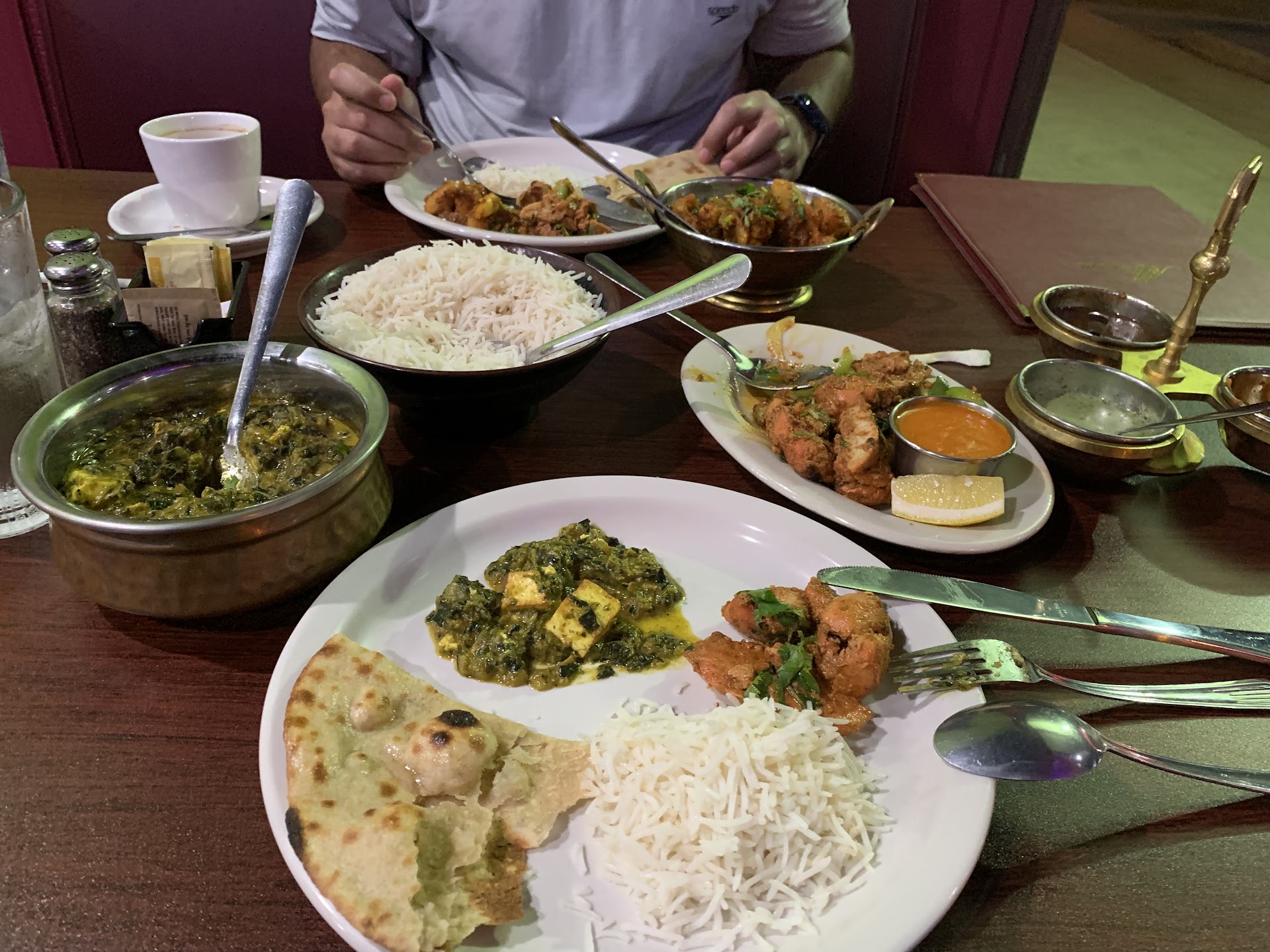 Impressively delicious. Let yourself be treated nicely. Food is deliciously seasoned and you can tell it’s fresh. We ordered saag paneer, aloo gobi, samosas, tandoori tikka chicken, masala tea, roti and rasmalai for dessert. I’m pregnant so had to order medium spicy, ir was perfect. We could tell how much energy is put in the food and service. It was late for us so we decided to leave half of our food to enjoy today. We can’t wait to have a lovely lunch.