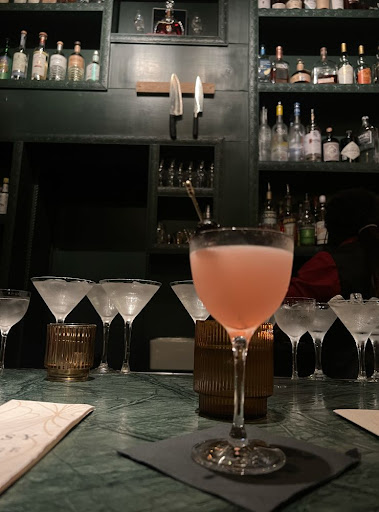 Design/Space: The space sets the tone for a cozy, intimate evening. The space is stylish, with moody lighting and a three-story layout that feels both inventive and the "speakeasy" vibes most would understand (books, hidden doors, etc). We sat on the first floor, and the ambiance felt great. The green and gold accents were tastefully done.