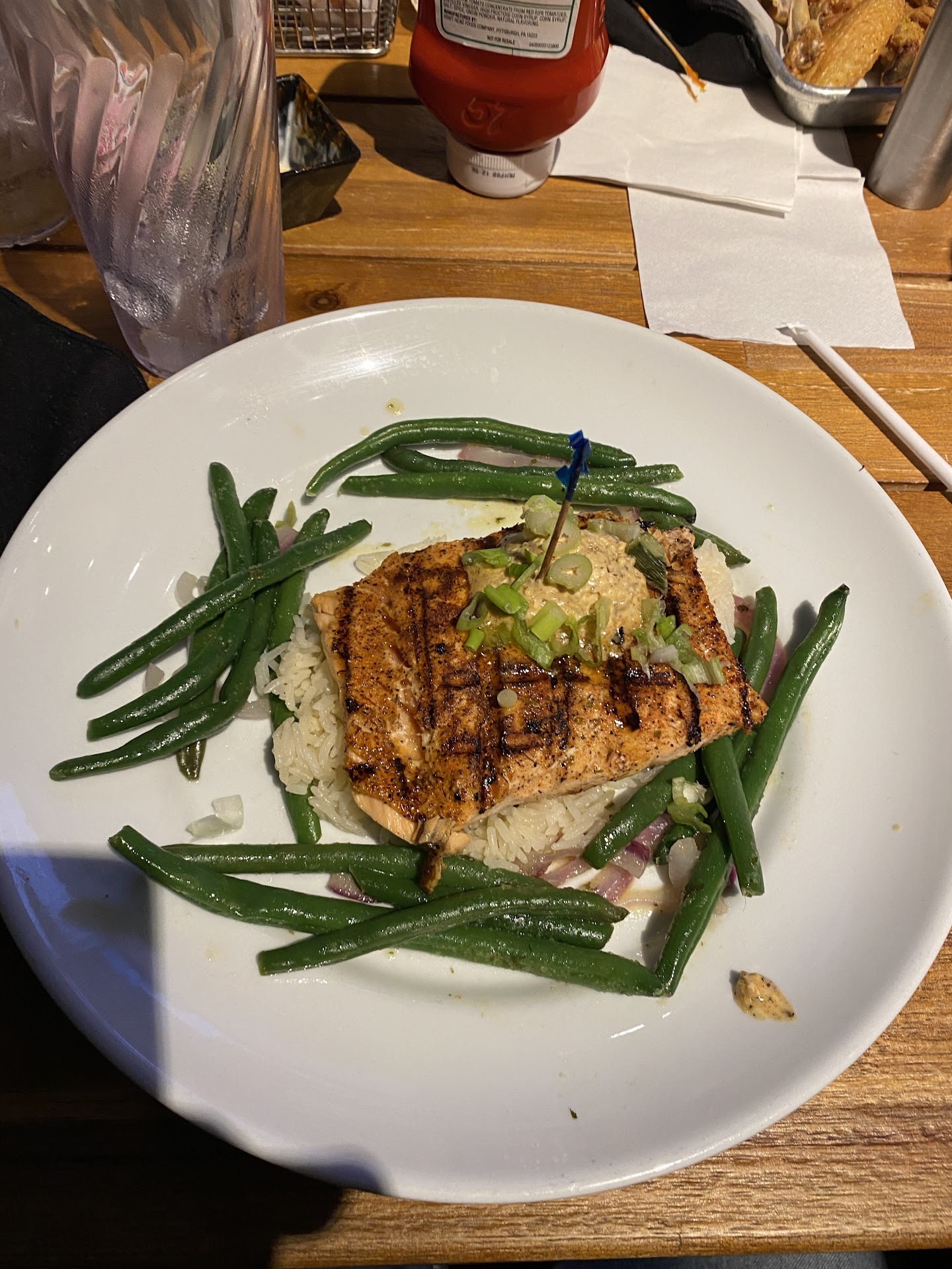 As my nephew was running later than expected, we ordered two more drinks and then decided to place our food order. We both wanted the Cajun Shrimp Pasta but asked to substitute the shrimp with chicken. I asked the server, “Can we swap out the shrimp for chicken?” and she said, “Yes, but that would be an extra charge.” I immediately said, “So you charge more money for chicken?” She paused and replied, “Let me go check.”